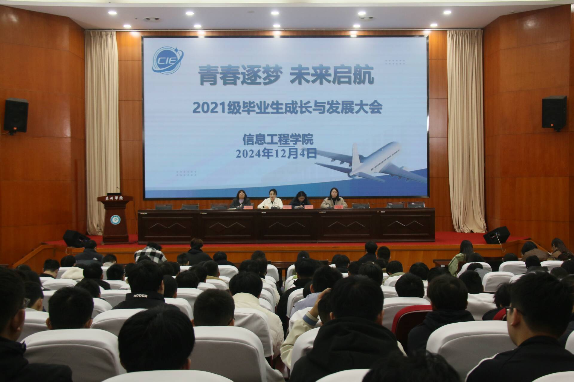 为扎实做好毕业生成长指导与就业服务工作,打通就业育人最后一公里,12月4日上午,信息工程学院“青春逐梦 未来启航”2021级毕业生成长与发展大会在行政楼胡瑗讲堂隆重召开。学院领导班子成员、辅导员、班主任及全体在校毕业生参会。