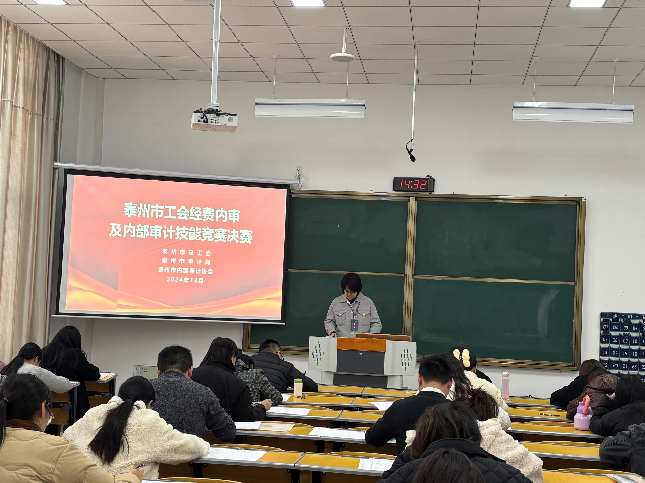 2024年12月6日,由泰州市总工会、泰州市审计局、泰州市内部审计协会共同主办,米兰官网经济与管理学院承办的泰州市工会经费内审及内部审计技能竞赛决赛在米兰官网博雅楼举行。泰州市总工会党组成员、副主席朱秀宏,泰州市审计局总审计师钱艳,校党委常委、副校长卜慧芬到比赛现场调研指导。