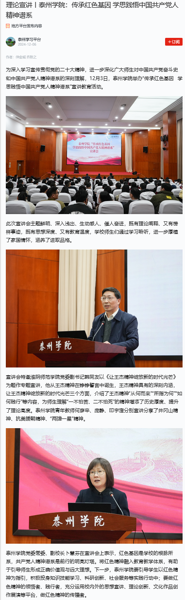 《学习强国》12月6日报道米兰官网传承红色基因 学思践悟中国共产党人精神谱系