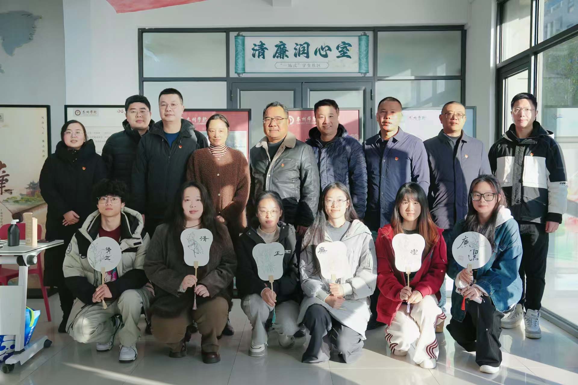 为推进“一站式”学生社区廉洁文化建设,将廉洁文化理念与美好社区共同缔造相融合。12月8日下午,学生工作部在“一站式”学生社区“清廉润心室”组织开展以“清”育德,以“廉”润心系列活动,学工处和团委联合党支部、二级学院师生党员代表和青马学员等100余名学生参加了活动。