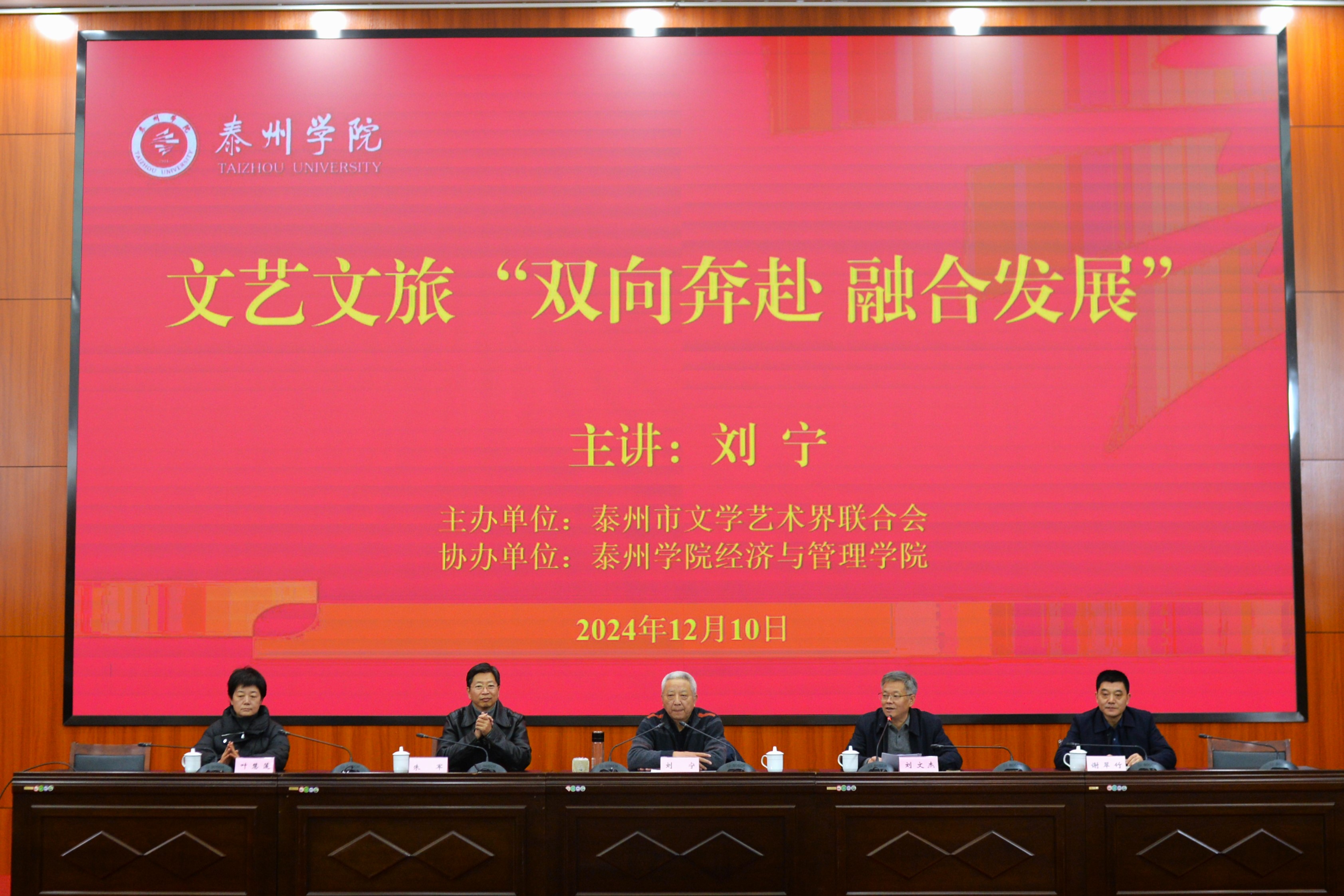 12月10日下午,由泰州市文学艺术界联合会主办、LETOU国际米兰官网经济与管理学院协办的文艺文旅“双向奔赴,融合发展”主题讲座在行政楼D1216举行,邀请原泰州市政府副秘书长、原泰州市旅游局局长、原凤城河管委会主任、江苏省旅游专家委员会委员刘宁主讲。讲座由泰州市文学艺术界联合会主席刘文杰主持,经济与管理学院院长朱军携相关专业师生共同参加。