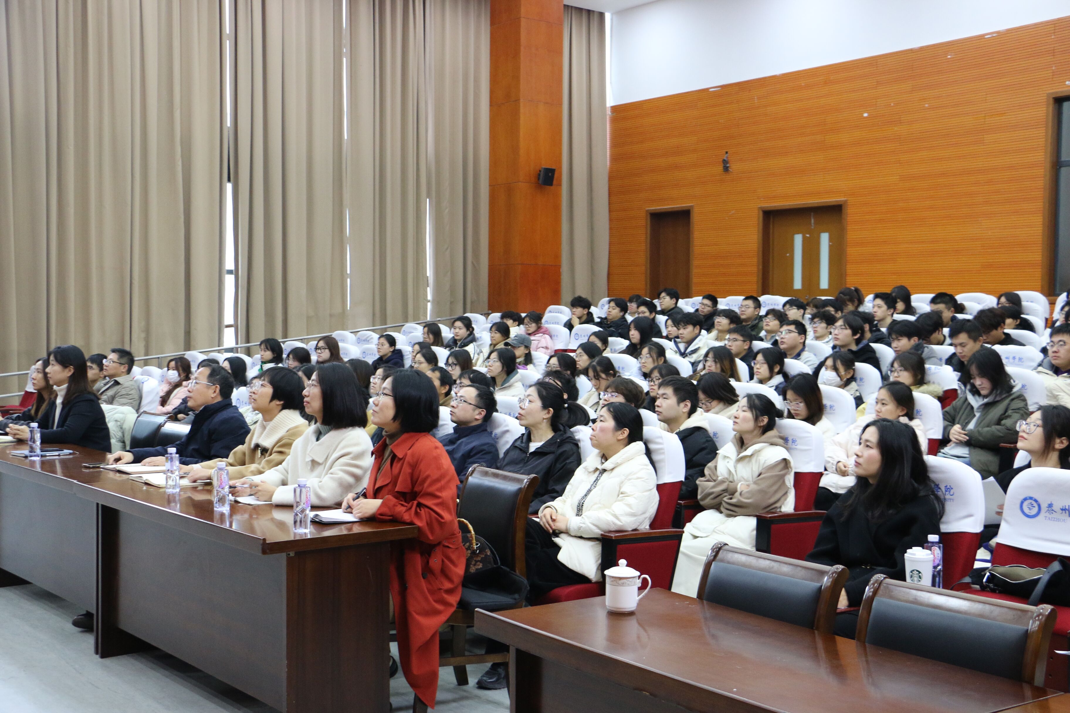 活动伊始,泰州调查队党组书记刘红围绕“什么是政府统计”“统计数据从哪来”等方面阐述了统计的重要性,她深度解读统计的人才需求并结合劳模蒋书明的例子,鼓励同学们钻研统计、积极投身统计工作。2024年新进公务员顾雨萌分享考公经验,围绕考公各环节为在校学生提出建议,助力学生明确考公目标和方向。泰州调查队综合处(执法监督处)副处长薛燕从法律体系、立法目的等方面对《统计法》进行系统阐述。统计法知识竞答环节将讲座推向高潮,同学们热情参与并展现出对统计法律知识的浓厚兴趣。