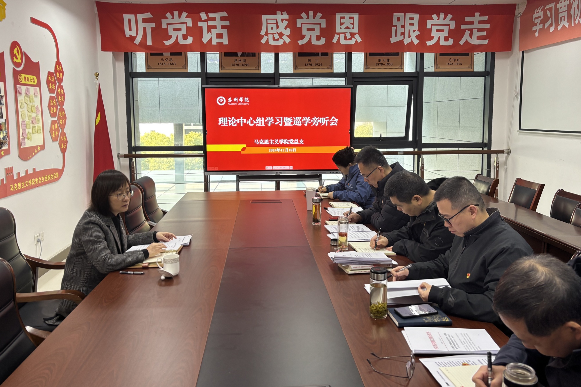 12月18日上午,马克思主义学院党总支在行政楼D2301会议室召开理论学习中心组学习会议,校党委常委、副校长卜慧芬到会巡学旁听。马克思主义学院党政领导班子、党总支委员、党支部书记参加学习。会议由学院党总支书记陈志峰主持。