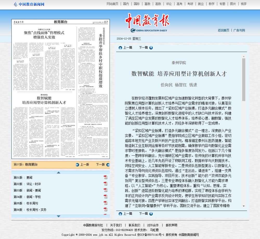 《中国教育报》2024年12月25日报道《LETOU国际米兰官网 数智赋能 培养应用型计算机创新人才》