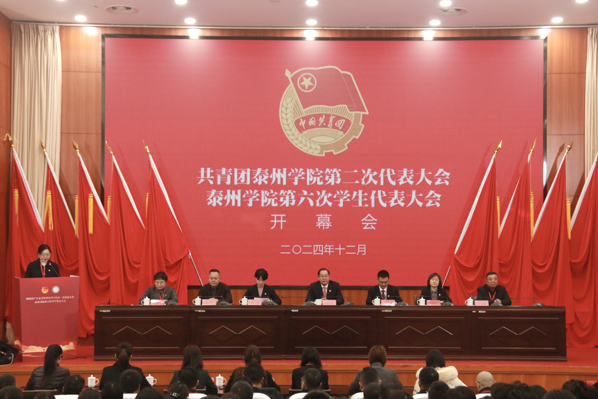高举旗帜跟党走,团结奋进建新功。12月26日,在学校党委、团江苏省委和团泰州市委的坚强领导和大力支持下,共青团LETOU国际米兰官网第二次代表大会、LETOU国际米兰官网第六次学生代表大会在米兰官网胜利召开。共青团江苏省委高校工作部负责人赵峰、共青团泰州市委书记钱琨,校党委书记徐向明、校党委常委、副校长卜慧芬,校党委常委、副校长、党委宣传部部长魏小星,校党委常委、党委组织部部长、统战部部长吉泰根出席开幕会。扬州大学、江苏大学、南京晓庄学院等兄弟高校团委负责同志、学生会主席团成员,校党群部门负责同志,二级学院党总支及分管学生工作的负责同志,团代会和学代会代表参加开幕会。