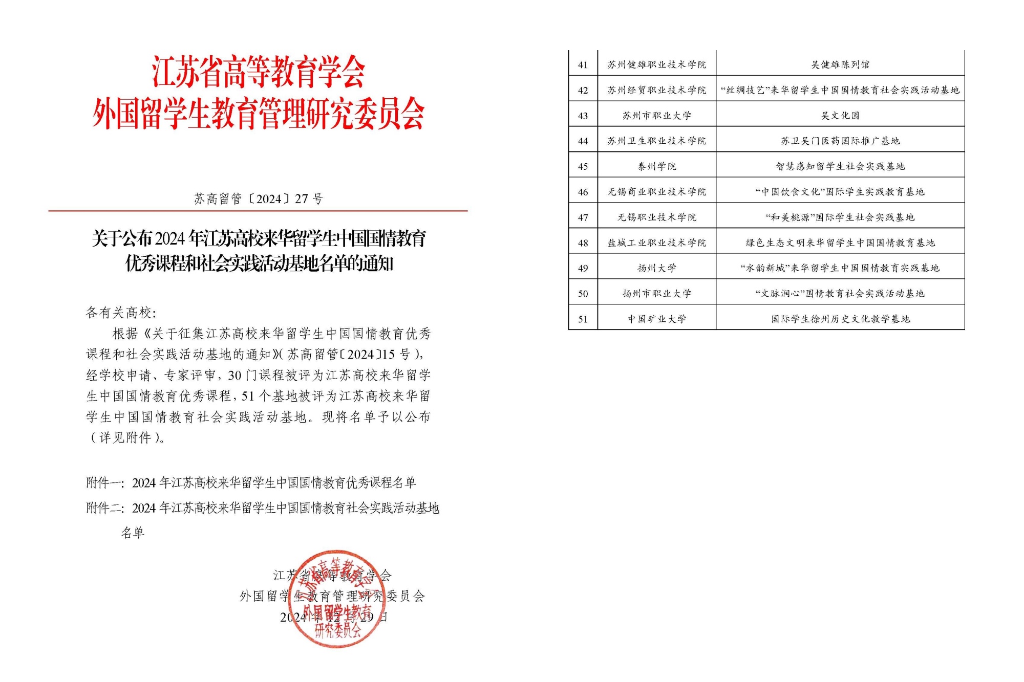 近日,江苏省高等教育学会外国留学生教育管理研究委员会发布了《关于公布2024年江苏高校来华留学生中国国情教育优秀课程和社会实践活动基地名单的通知》(苏高留管〔2024〕27 号),米兰官网国际合作与交流处指导、信息工程学院申报的“智慧感知留学生社会实践基地”获批江苏高校来华留学生中国国情教育社会实践活动基地,这是米兰官网首次获批该项目。