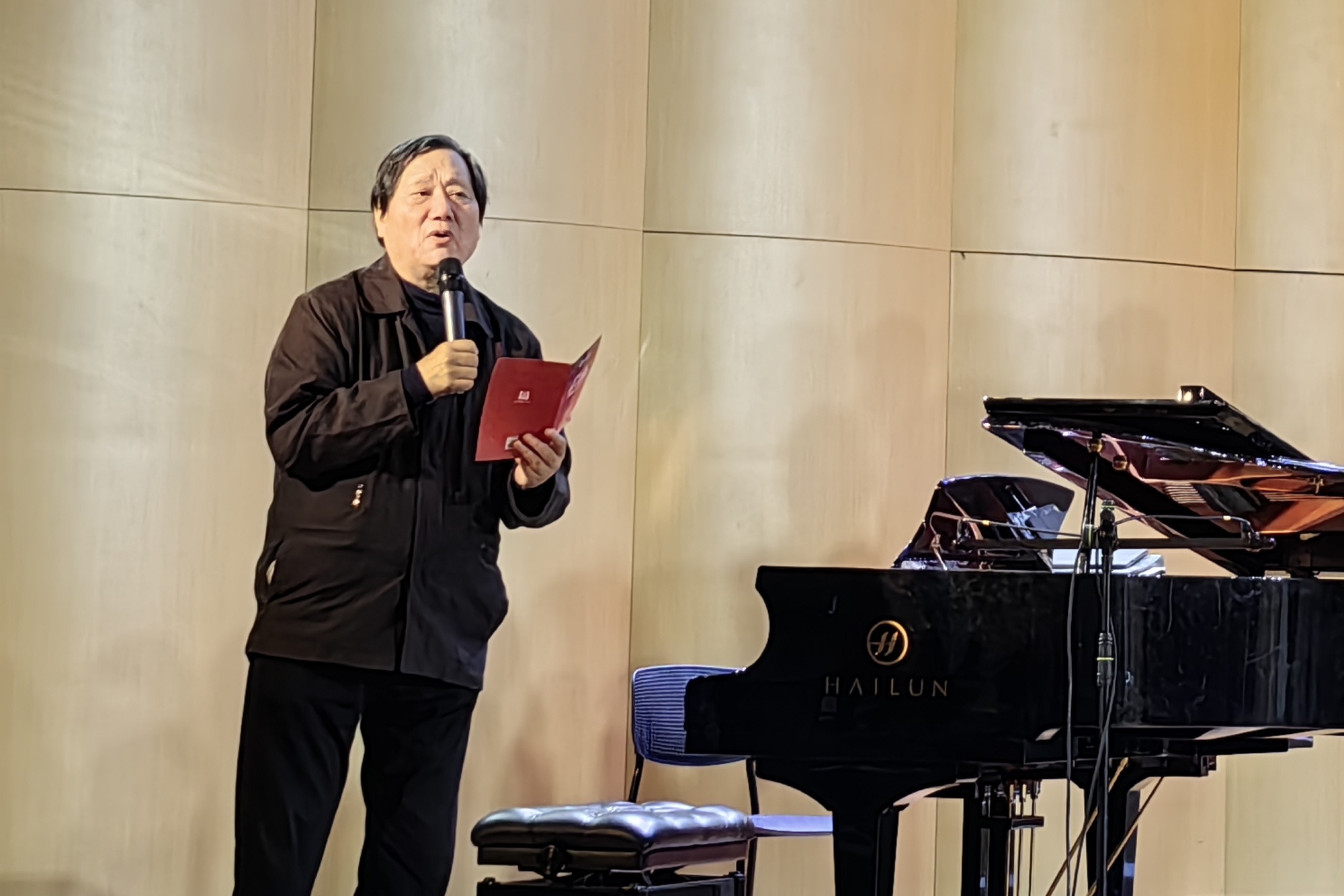 随着最后一个音符仿若星辰般缓缓落下,音乐会临近尾声,任宝平教授对音乐会进行点评。他充分肯定了音乐学院对应用型人才培养的重视,赞扬了星光合唱团今晚的精彩演出,并对星光合唱团的发展提出了殷切希望。