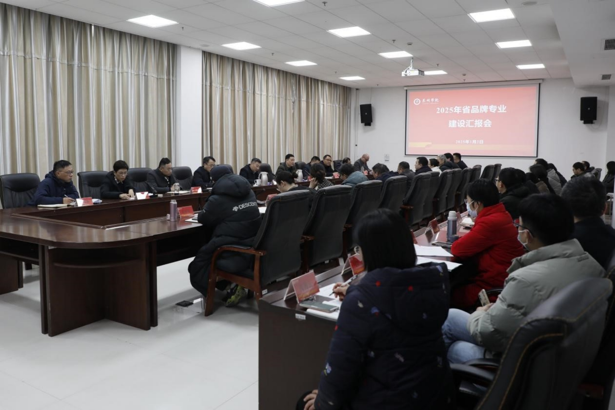 小学教育、制药工程两个省品牌专业(三期)建设项目负责人和物联网工程、电气工程及其自动化两个省产教融合品牌专业负责人分别汇报了本专业2025年建设任务和工作举措。