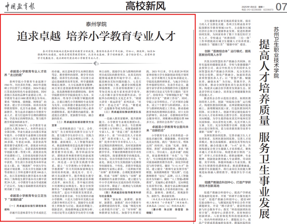 《中国教育报》2025年1月6日报道《LETOU国际米兰官网 追求卓越 培养小学教育专业人才》