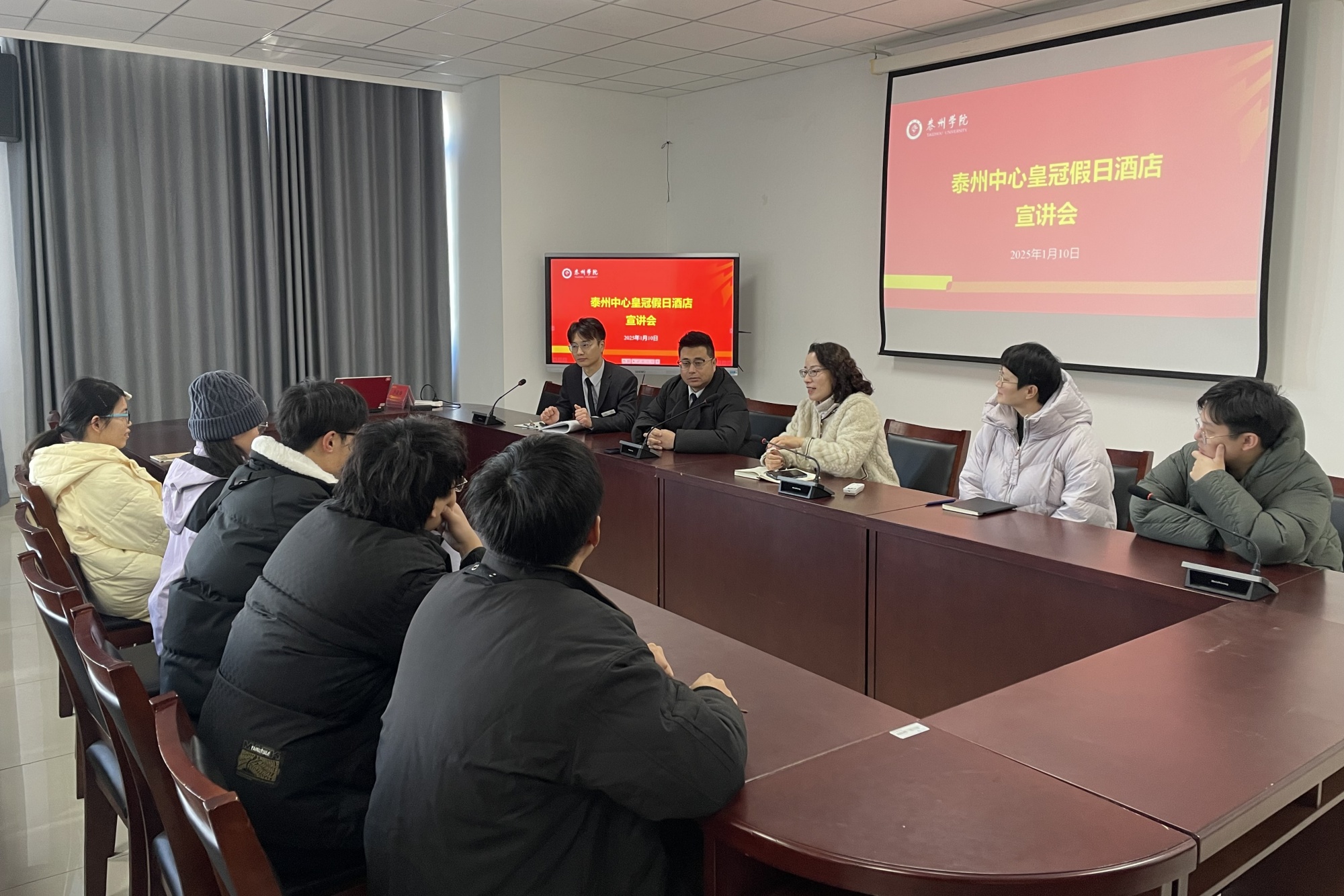为进一步拓宽毕业生就业渠道,促进毕业生留泰就业,1月10日,经济与管理学院邀请泰州中心皇冠假日酒店到校举办专场招聘宣讲会。学院党总支副书记王硕、辅导员以及2025届毕业生参会。