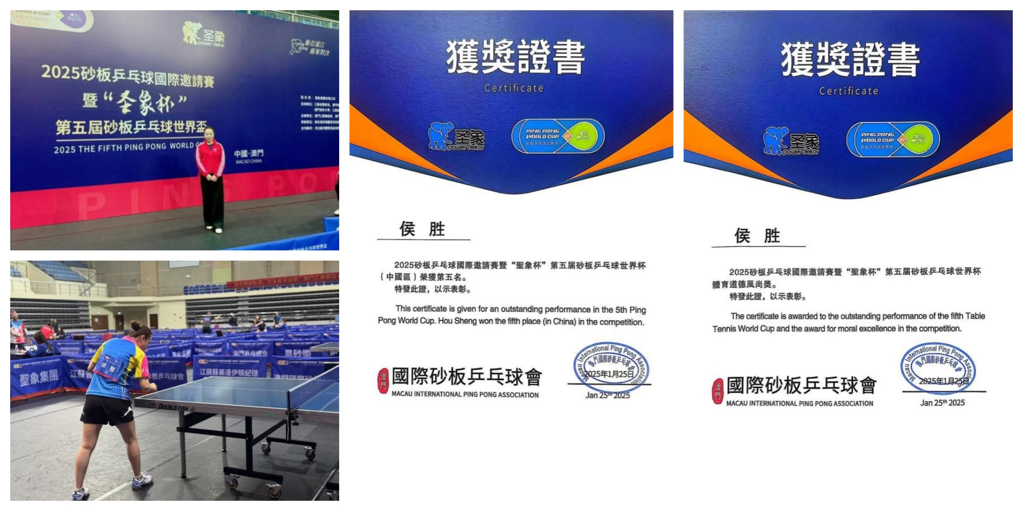 1月22日至25日,第五届“圣象杯”砂板乒乓球世界杯比赛在澳门隆重举行。本次赛事采取男女运动员混合编组的赛制,共有18个国家和地区的128名顶尖选手参赛。米兰官网公共体育部侯胜老师(女)作为中国区选手参赛,荣获资格赛(中国区)第五名的优异成绩。