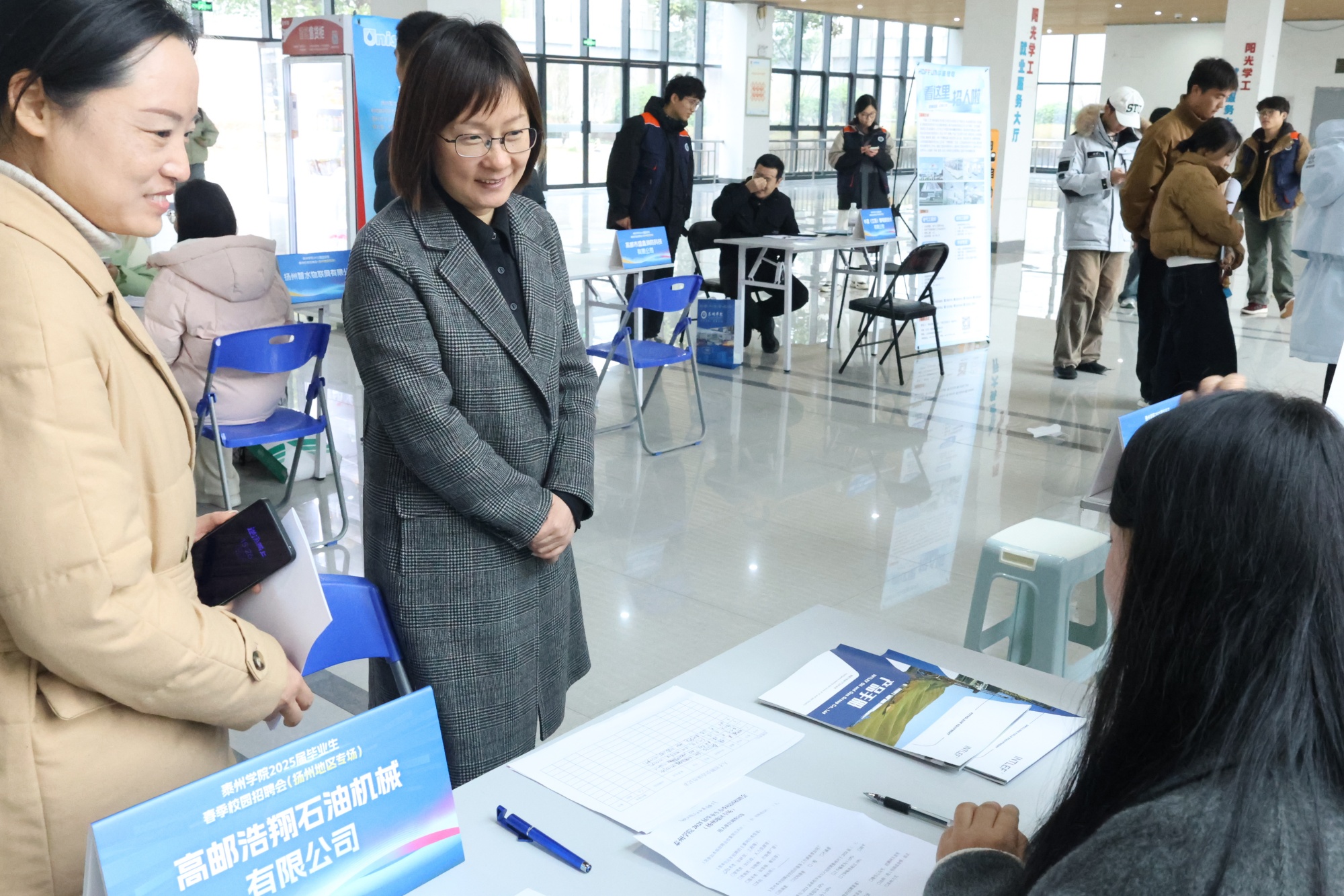 本次招聘会在扬州市人力资源市场管理办公室的支持下,共邀请了江苏汇成光电有限公司、江苏绿科生物技术有限公司、扬州黑马培训中心有限公司等15家优质企业,累计提供电气工程师、技术研发工程师、生物科技、教育等300余个岗位,吸引了200多名学生参与。