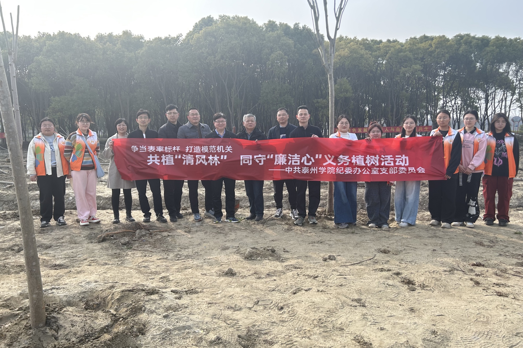 春回大地万物苏,培根铸魂正当时。3月11日下午,纪委办党支部与高港区纪委机关第一党支部相约口岸街道,联合开展“共植清风林 同守廉洁心”义务植树主题党日活动。纪委办党支部全体党员、二级党组织纪检委员和大学生廉洁社团学生代表参加此次活动。