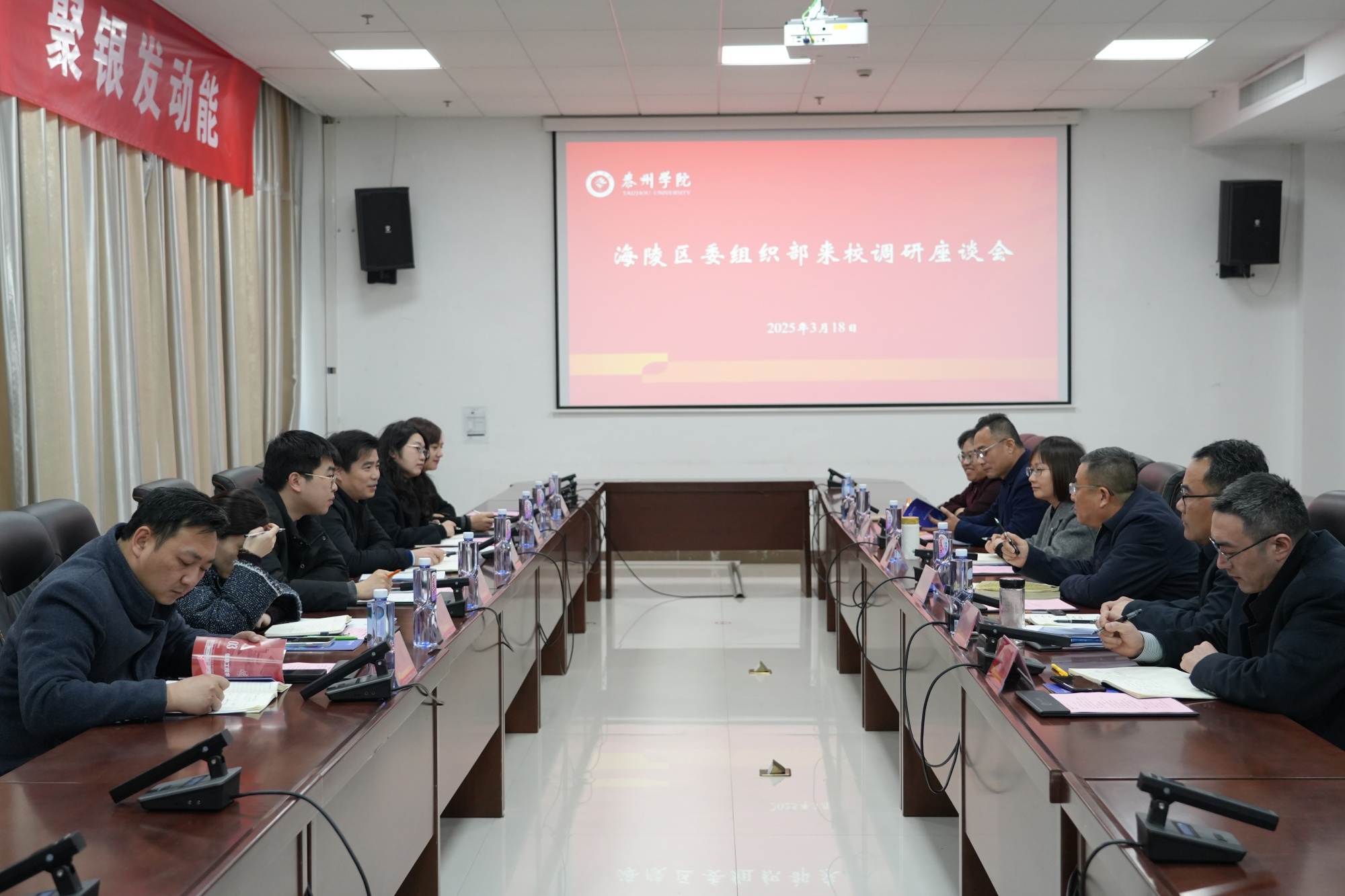 3月18日下午,海陵区委组织部副部长、人才工作局局长吴志军率队来校调研指导工作,就深化校地合作、服务地方发展等事宜进行座谈交流。校党委常委、副校长卜慧芬出席座谈会,校党委组织部、统战部、教师工作部、学生工作部、团委、继续教育学院等单位负责人参加了座谈会,会议由校党委常委、组织部部长、统战部部长吉泰根主持。