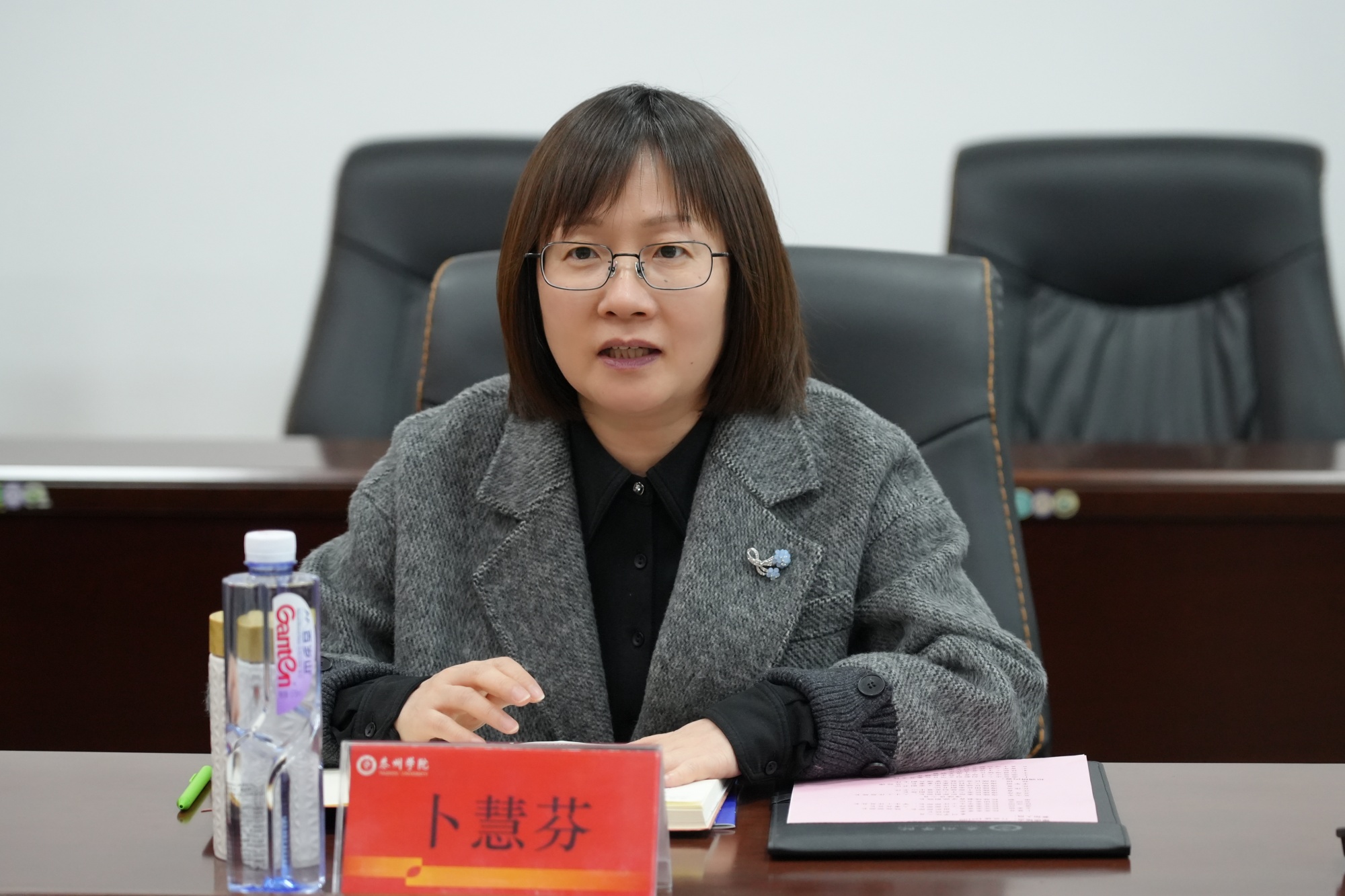 卜慧芬代表学校对吴志军一行的到来表示热烈欢迎,对海陵区委长期以来给予学校发展的关心支持表示衷心感谢。她详细介绍了学校办学历史、学科建设、科技服务等方面的情况,重点阐述了学校服务泰州“大海新晨”现代产业体系的战略布局。卜慧芬表示,学校将坚持扎根泰州、服务地方,以特色学院对接“大海新晨”产业标志,以专业集群对接产业集群,以科研团队对接产业链,为地方经济社会发展提供有力支撑。