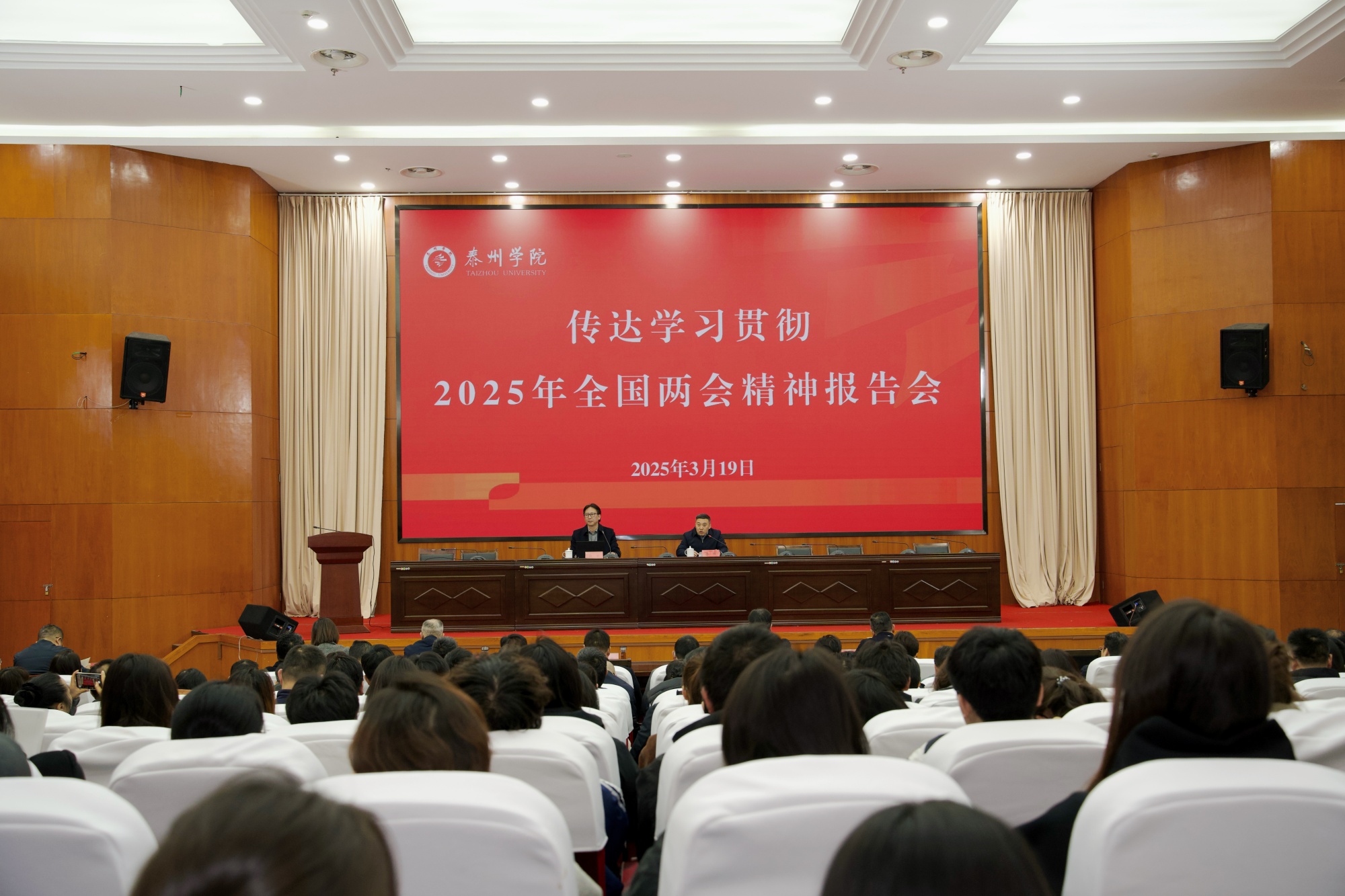 3月19日,米兰官网在明达楼D1216胡瑗讲堂召开传达学习2025年全国两会精神报告会,第十四届全国人大代表、米兰官网美术学院院长黄平教授作报告。全体在泰校领导、中层干部和师生代表参加报告会,校党委副书记、校长季赛主持会议。