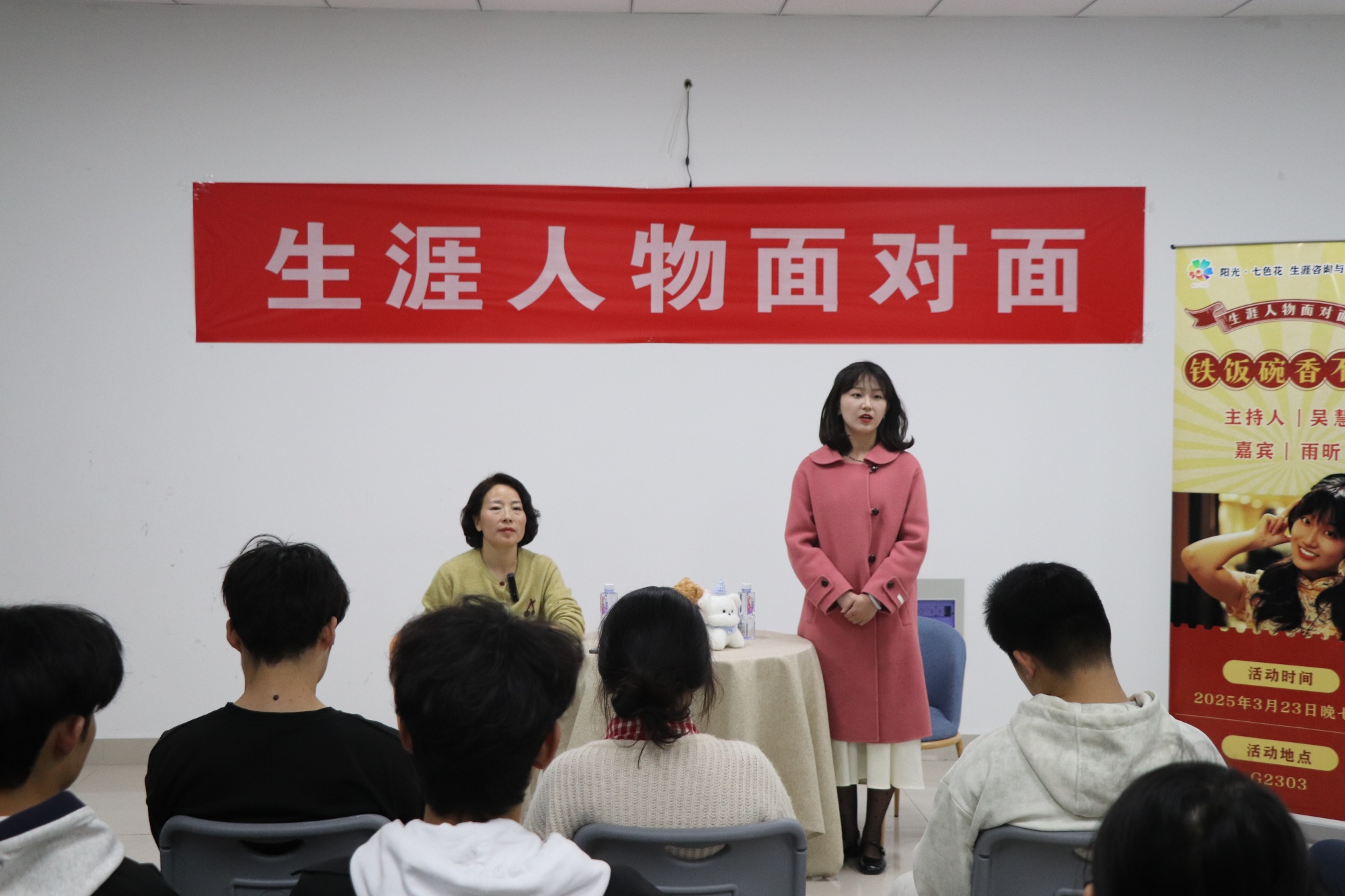 活动以“铁饭碗香不香”为主题。围绕个人成就故事、职业定向、入职准备、典型工作日、职业技能和素质、大学生职场适应、福利待遇以及未来规划和就业建议等逐层推进。朱雨昕分享了从省考国考失利到以B类第一的成绩考取事业编的经历与心得,讲述了从第一次离开家独立生活的困窘到人际关系适应、学生干部历练和实习实践经历等。会后,她耐心为现场学生答疑解惑。