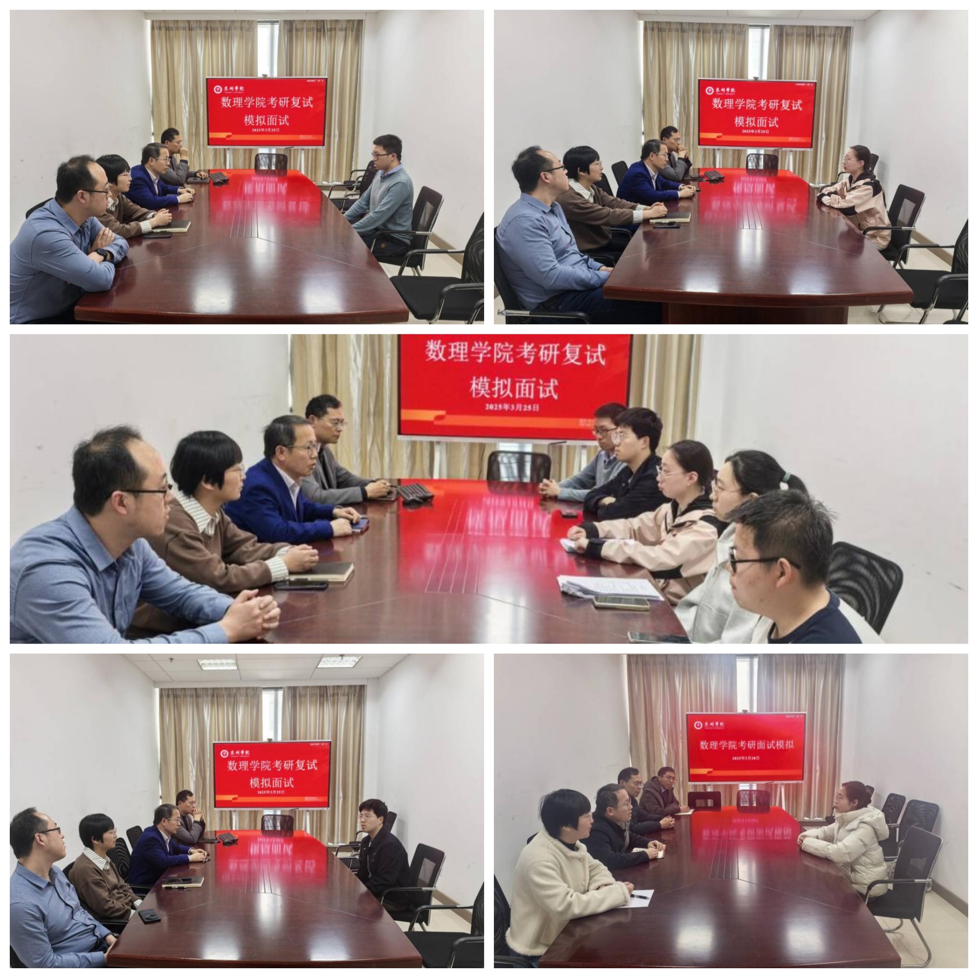为增强2025届考研学子的面试技巧与应试能力,3月20日和25日下午,数理学院在明达楼D2423会议室举办考研复试模拟面试。数理学院院长王成敏、副院长王志华、赵燕以及教研室主任担任模拟面试考官。