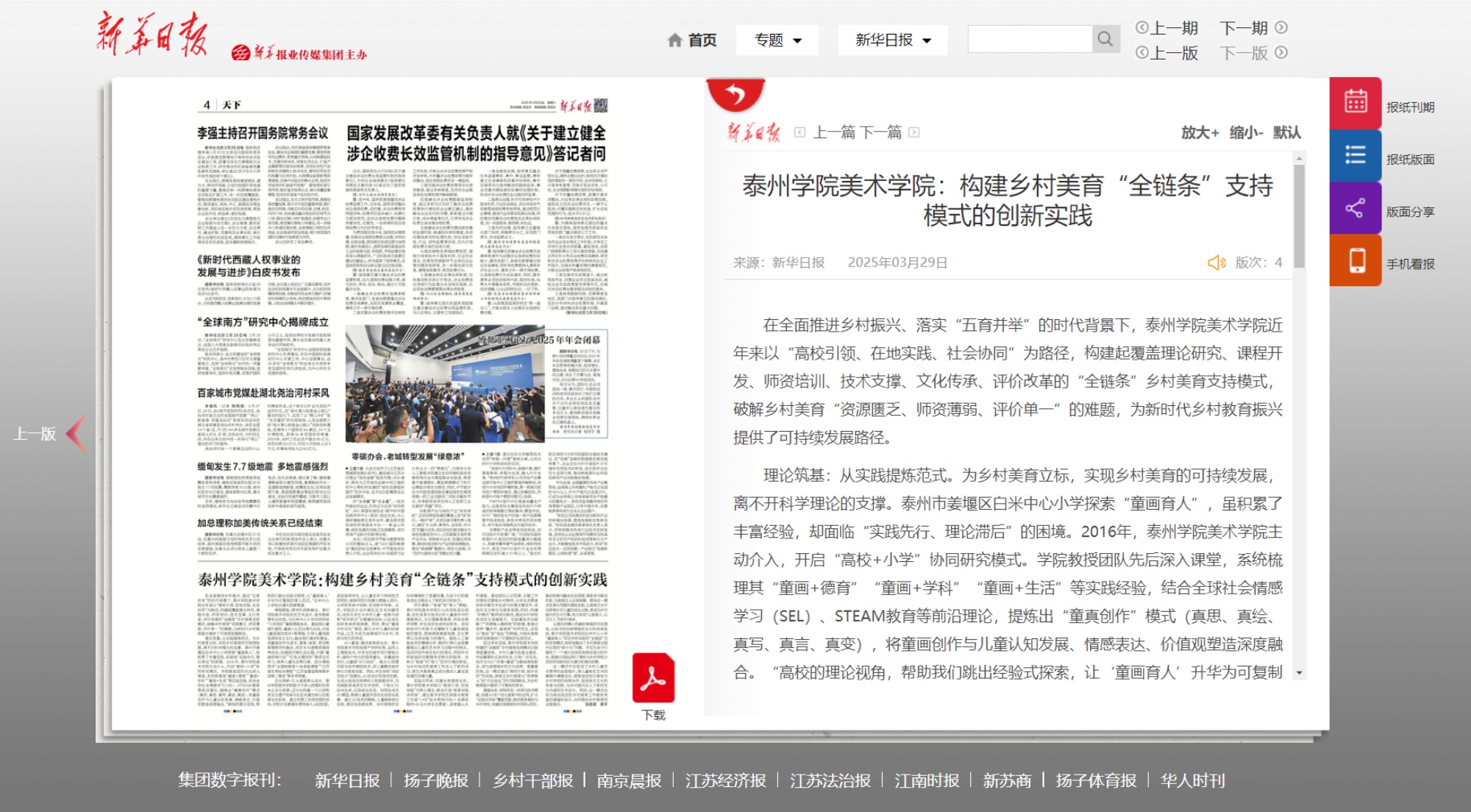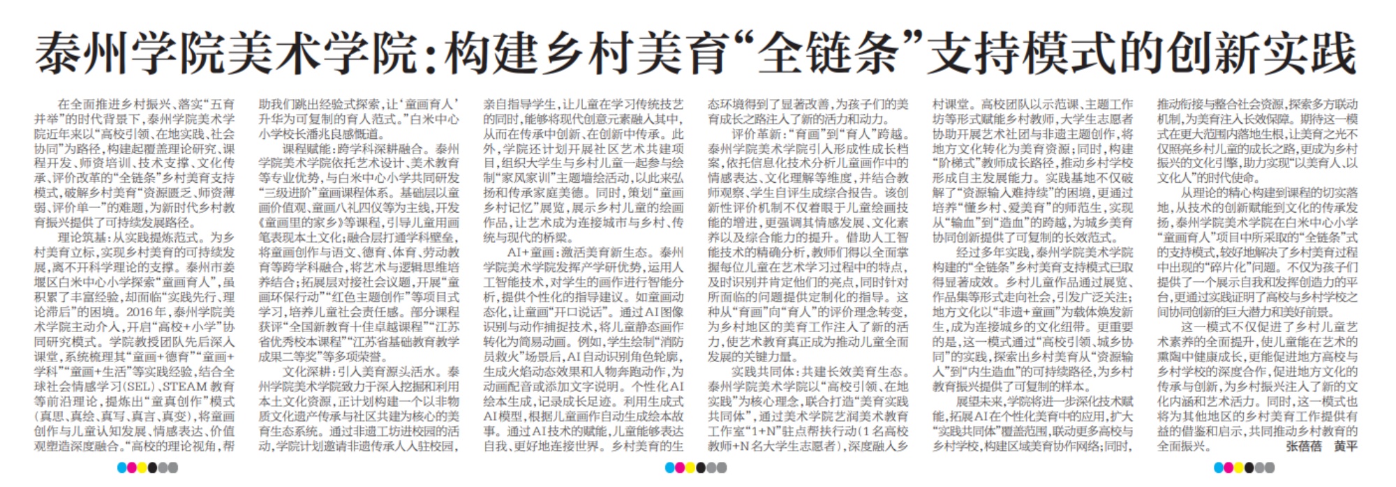 《新华日报》2025年3月29日报道《LETOU国际米兰官网美术学院:构建乡村美育“全链条”支持模式的创新实践》