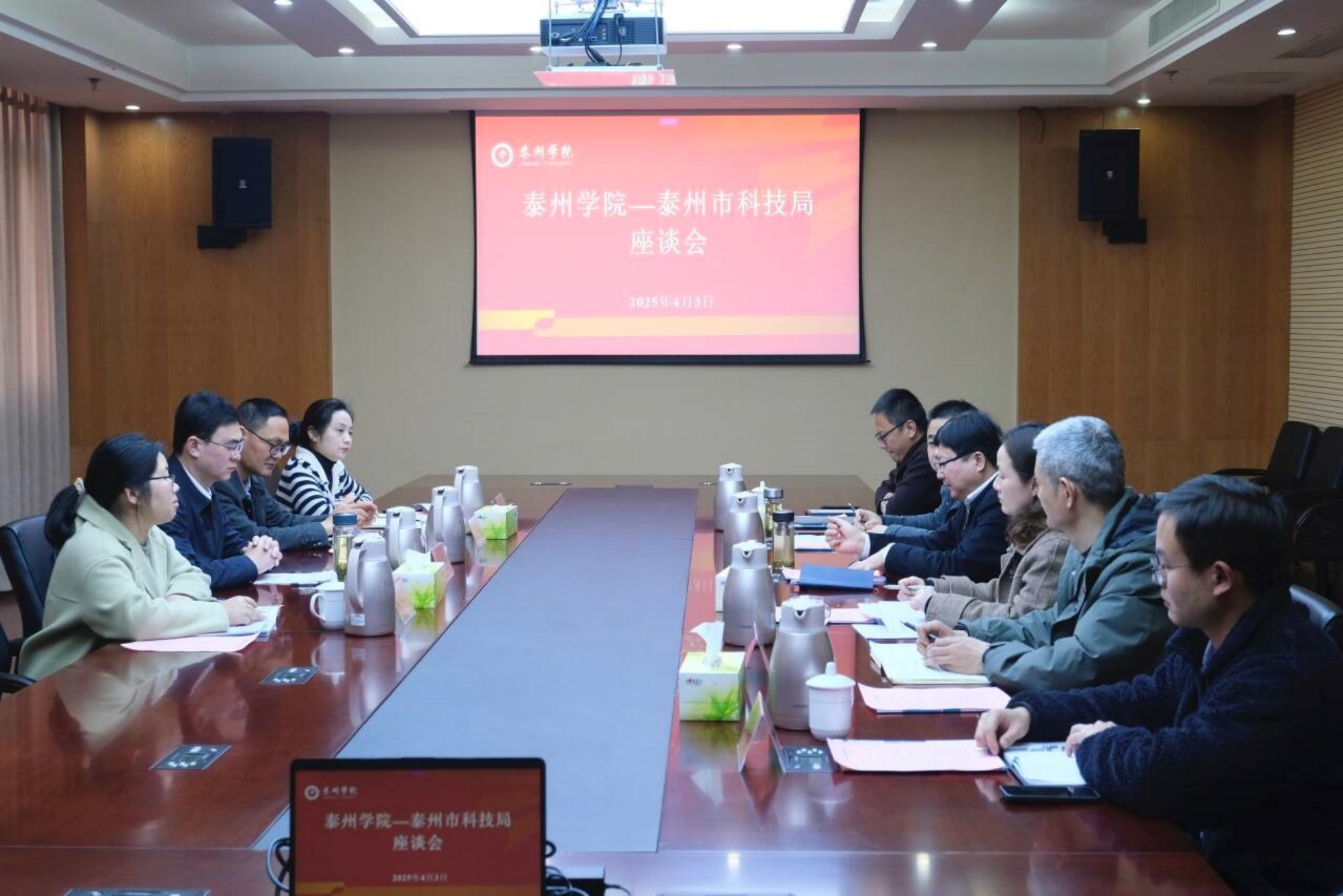 发展规划处汇报了校地合作工作进展,科研处汇报了“百名博士/教授进百企”科研服务团队基本情况,三个科研团队负责人详细汇报了各自业务擅长领域以及今后服务泰州的工作计划。
