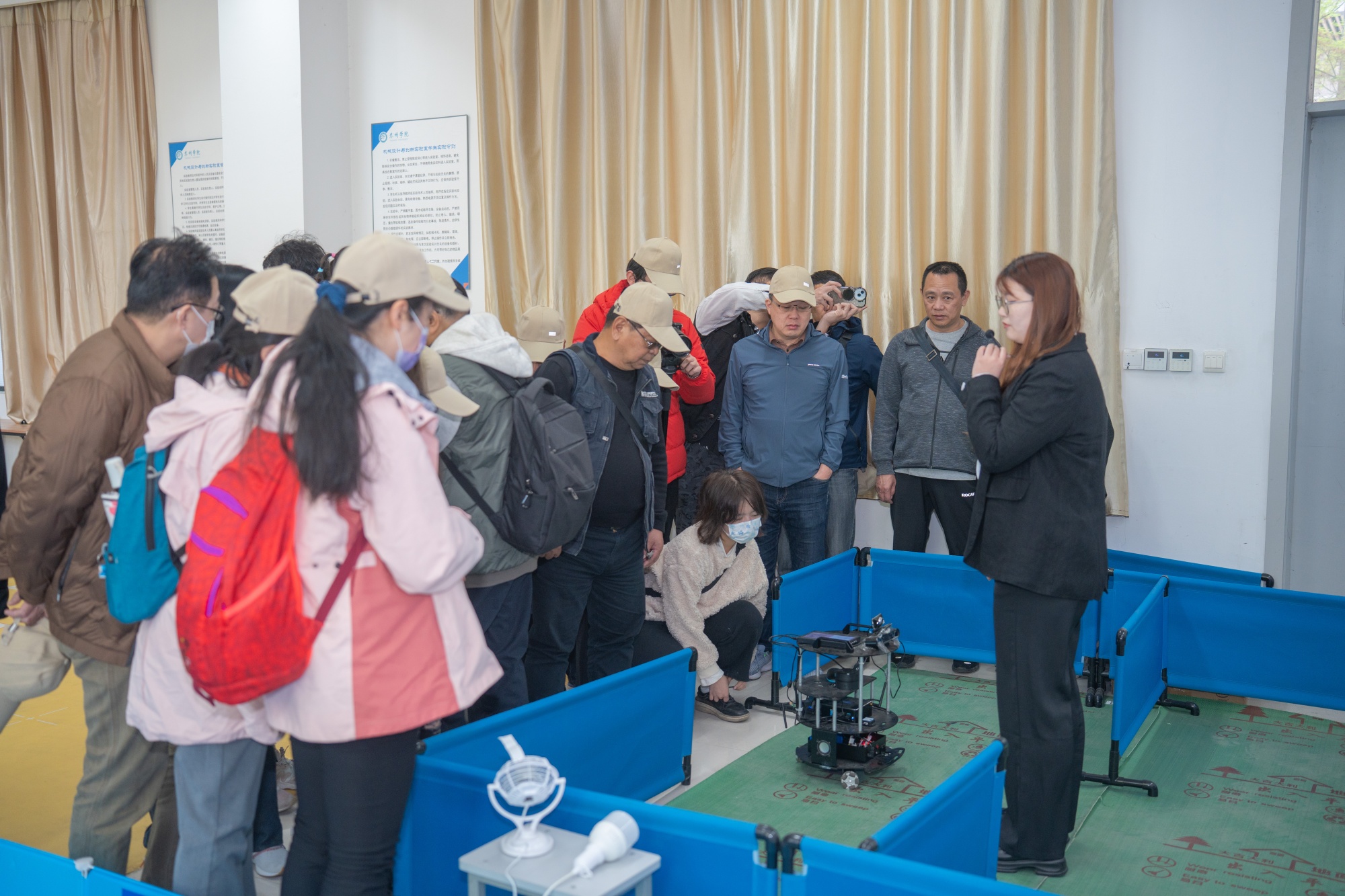 交流团一行首先观看由信息工程学院展示的养老机器人和采摘机器人的操作。学生通过操控机器人小车完成前进、转向、精准判断果实成熟度并自主采摘等动作,让来访的台湾师生们纷纷拿起遥控器,亲身体验智能科技的魅力。