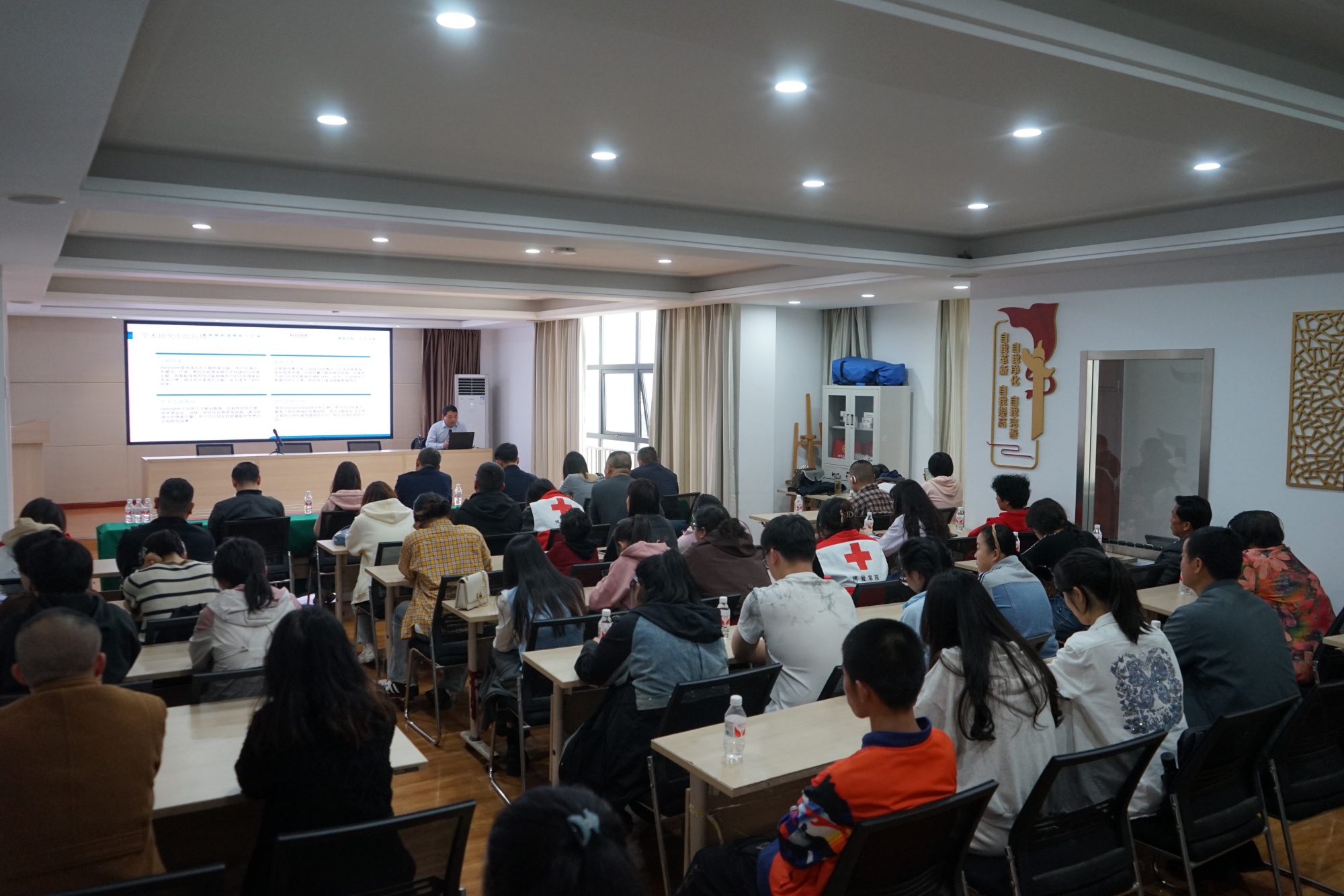 为助力残疾人群体拥抱数字时代,感受科技温度,4月11日下午,人文学院师生志愿服务团队走进海陵区京泰路街道残联,在润泰社区道德讲堂举办“Deepseek打开‘院’景,探索‘京’彩”人工智能主题公益活动。赵广志老师带领2022级汉语言文学1班、2022级汉语言文学4班、2023级汉语言文学3班、2024级汉语言文学3班的师生团队以通俗易懂的语言,深入浅出地讲解了Deepseek等AI技术的基本原理及日常应用场景,让学员们直观感受科技如何为生活赋能。
