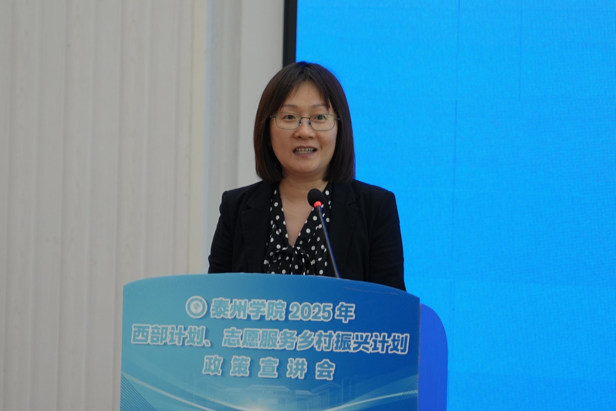 卜慧芬在讲话中指出,西部地区和广大乡村是国家战略实施的重要阵地,为青年学子提供了施展才华、建功立业的广阔舞台。她鼓励同学们认真研读政策,结合自身实际,做出理性选择,将个人成长与国家需求紧密结合。她对校团委和二级学院团总支提出明确要求,强调要以高度的政治责任感推进“两个计划”实施,确保政策宣讲有力度、宣传动员有温度、服务保障有精度,切实为学生就业搭建优质平台。