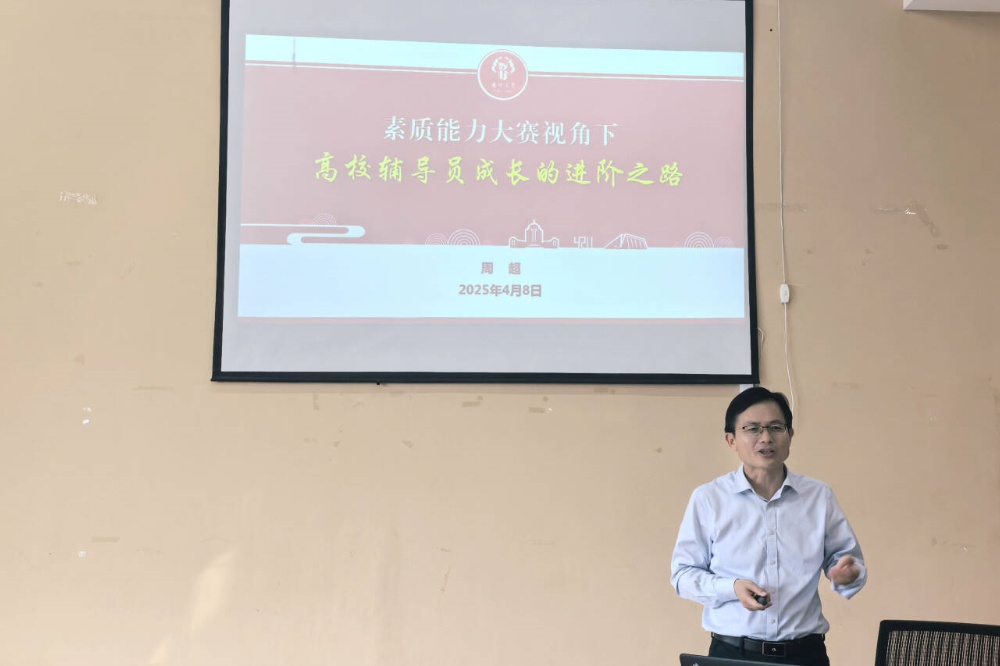 周超以“素质能力大赛视角下,高校辅导员成长的进阶之路”为题,从赛事历程回顾、赛事环节和技巧剖析、辅导员成长的破局思路三个方面进行阐释,详细解读了基础知识测试、案例研讨及谈心谈话三大赛事环节的构成和参赛技巧,引导辅导员们深刻理解比赛的重要意义和备赛思路。