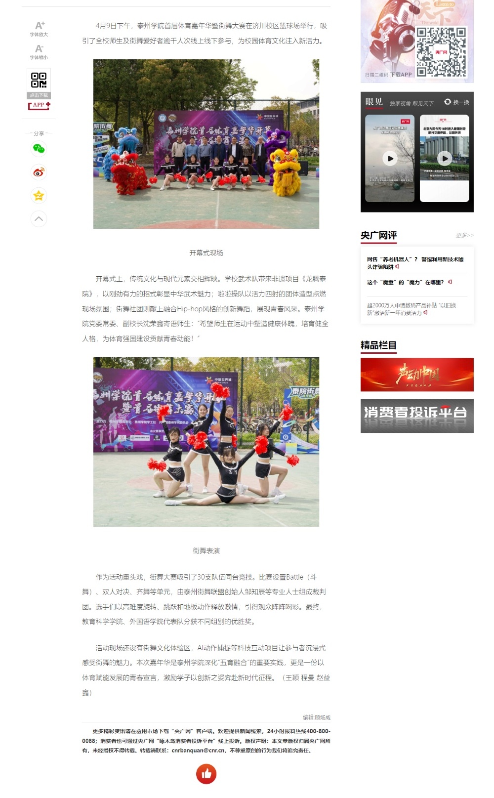 《央广网》2025年4月11日报道《传统与潮流碰撞!LETOU国际米兰官网体育嘉年华街舞大赛圆满落幕》