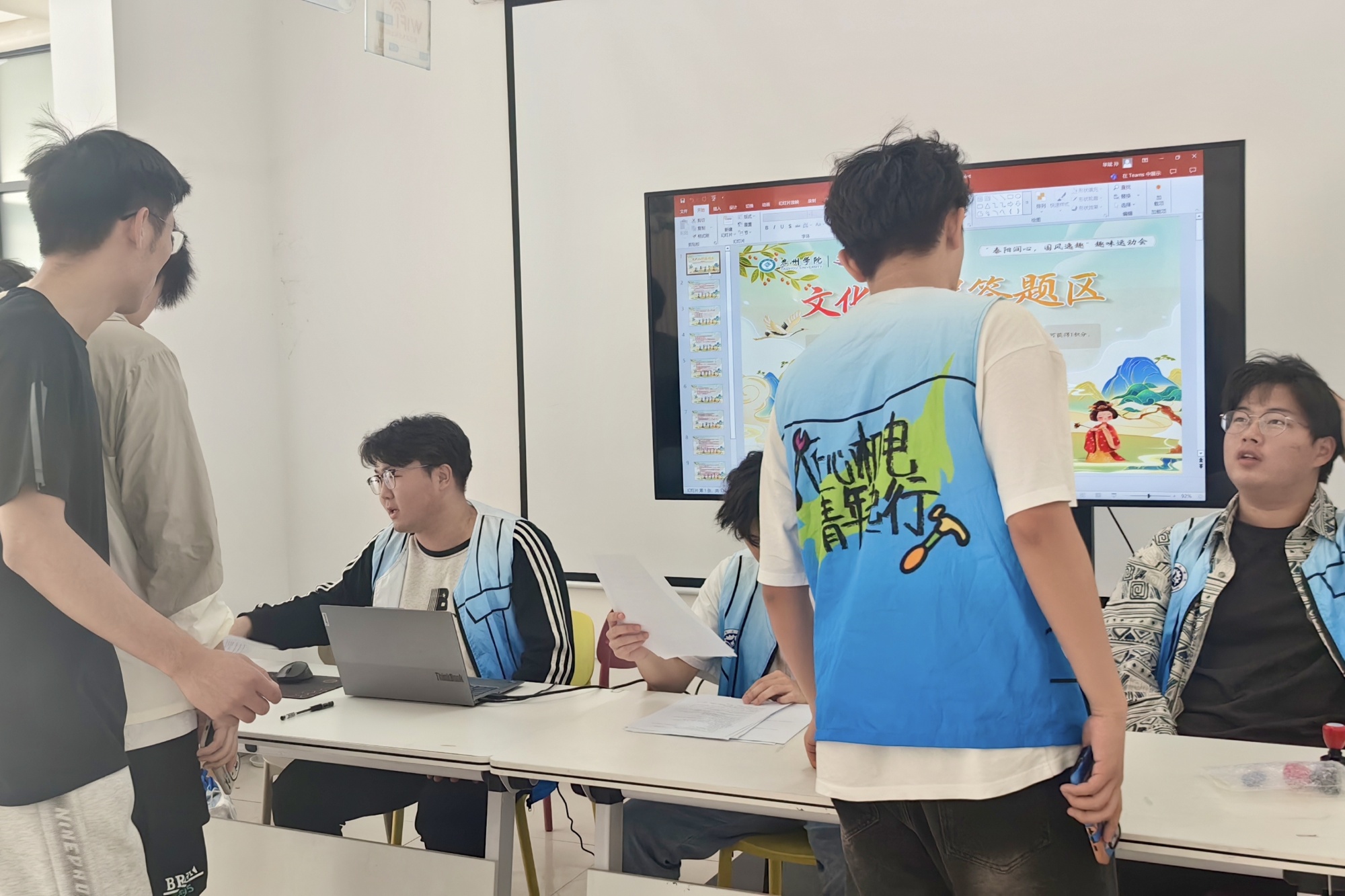 本次活动创新采用“古风今韵”双轨模式,构建出别样的竞技场景。在国风趣味运动区,投壶、捶丸、踢毽等传统民俗游戏经现代改良焕发出全新活力,既延续古代“六艺”文化精髓,又巧妙融入团队接力、积分闯关等创新玩法,让参与者在奔跑协作间感受传统体育的魅力。文化知识答题环节精心设计校史典故、节气民俗等多元题目,参赛师生以文会友、以智交锋,在思维碰撞中深化知识储备,强化团队协作意识。现场加油声、欢笑声此起彼伏,气氛热烈非凡。