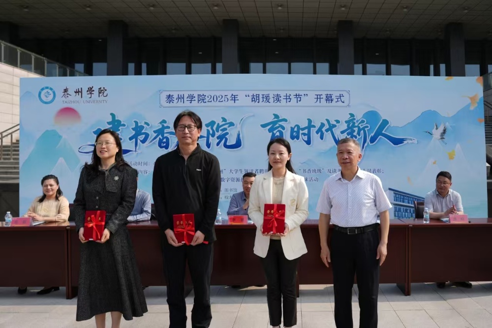 开幕式现场,校领导为“书香班级”和“阅读领航人”颁奖,并举行“乐学泰州”大学生领读者聘任仪式。开幕式还推出“书香猜谜”“图书置换”等特色活动,同步开展数字资源推广和师范生专题讲座。