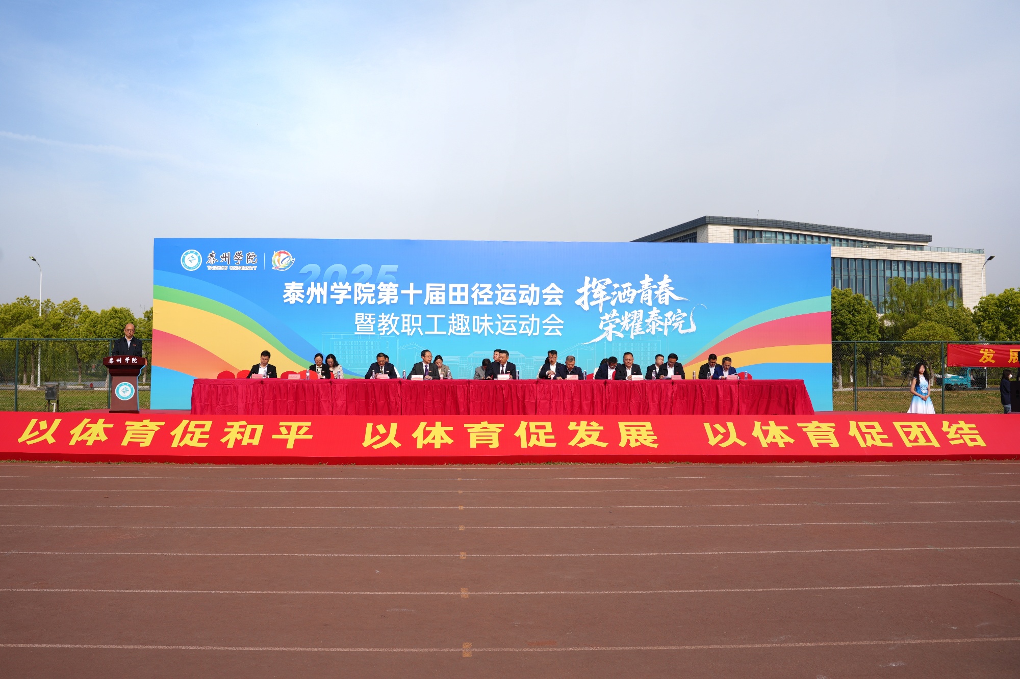 今年是学校“十四五”规划收官年、硕士点建设攻坚年。运动会这场融合竞技、趣味与文化的体育盛会,以昂扬之姿书写泰院人的青春华章,为学校高质量发展增添一抹亮色。学校将以此次盛会为契机,持续深化体育教育改革,推动“健康校园”建设,为培养德智体美劳全面发展的时代新人注入强劲动能。