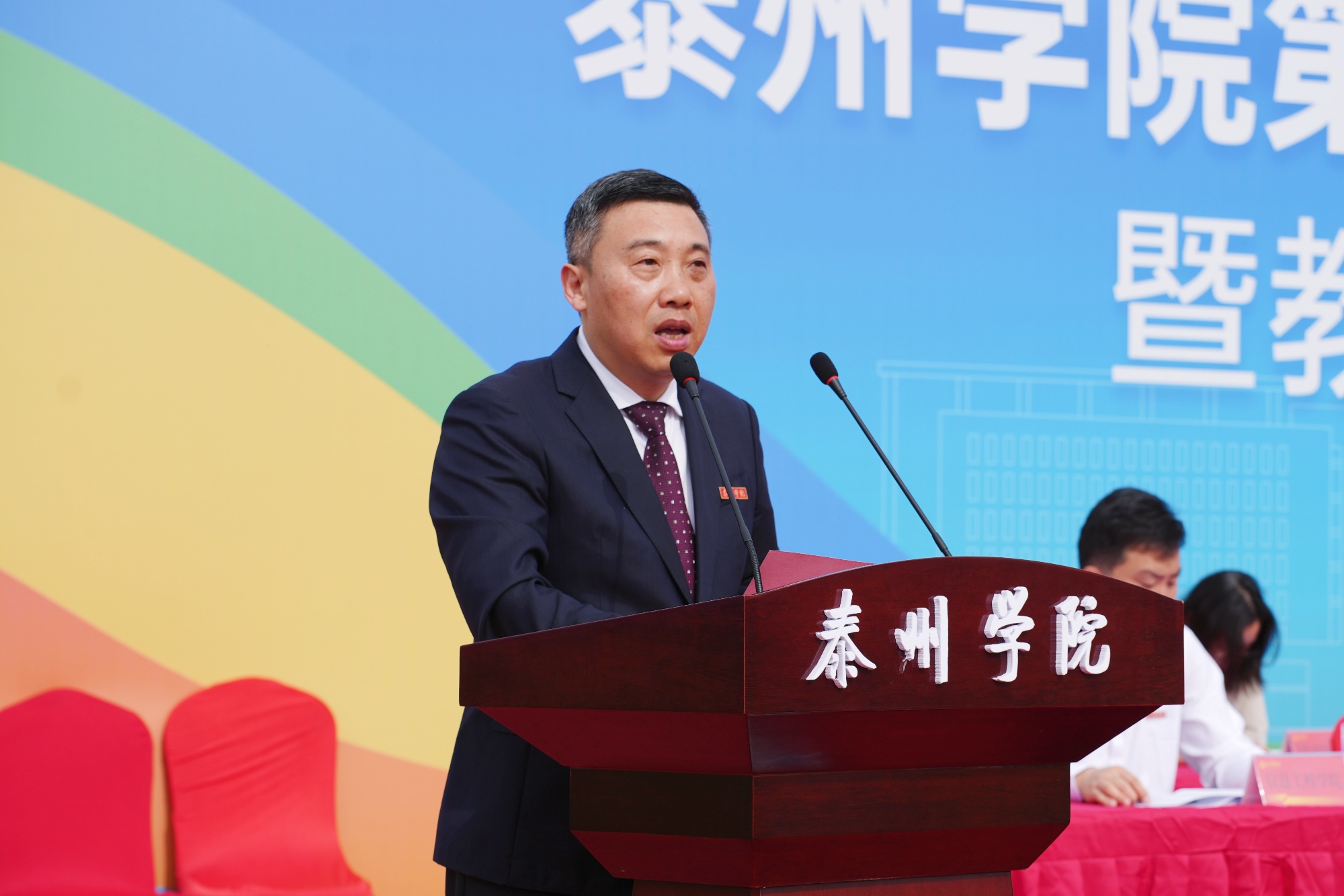 春风和煦,激情飞扬。4月24日上午,校第十届田径运动会暨教职工趣味运动会在济川校区田径场开幕。校党委副书记、校长季赛致开幕词,校党委常委、副校长沈荣鑫主持开幕式。在泰校领导及千余名师生齐聚一堂,共同见证这场活力与团结并存的体育盛会。