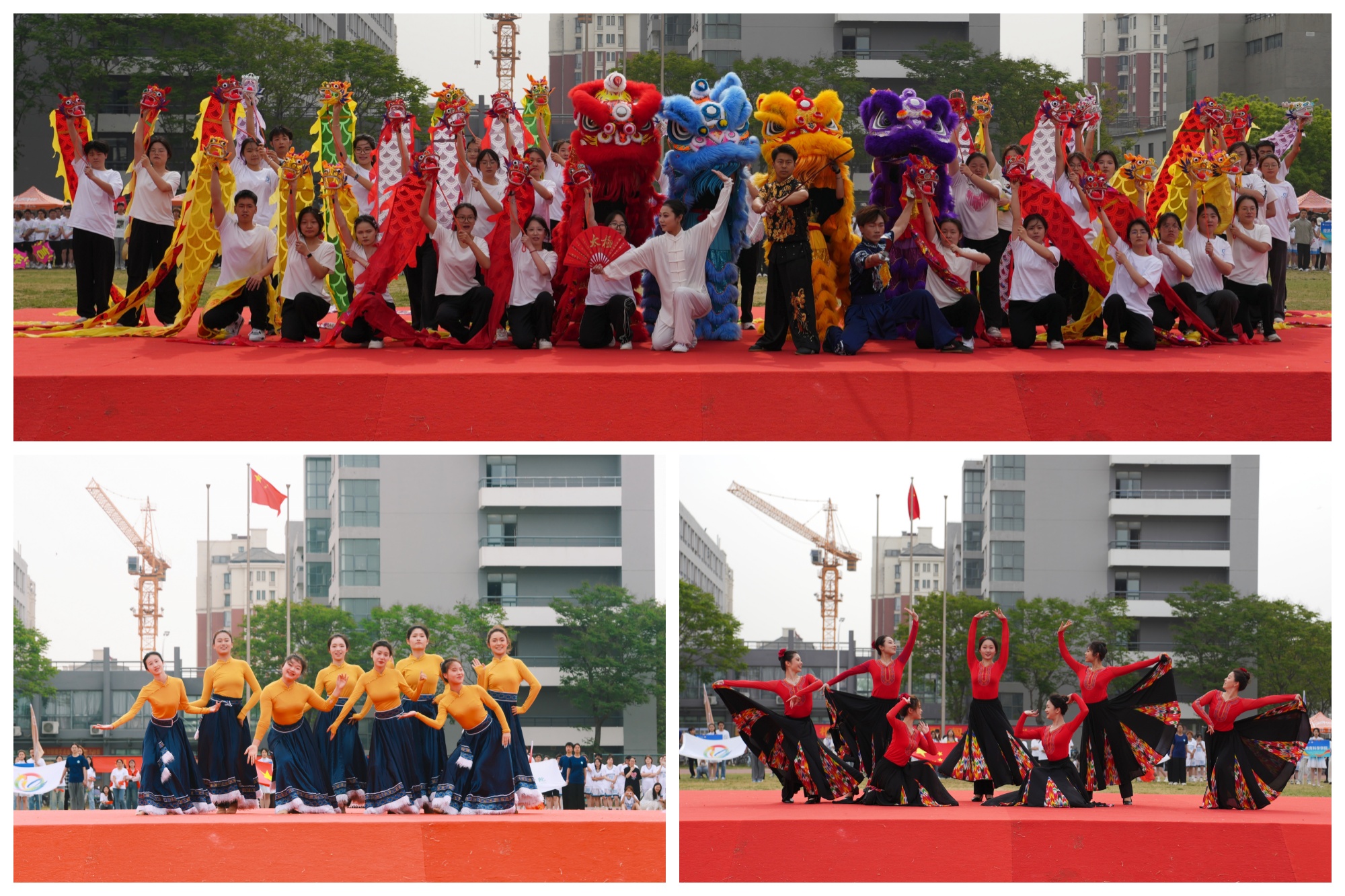 开幕式表演中,舞龙舞狮气势磅礴,尽显传统文化魅力;啦啦操与街舞活力四射,点燃全场热情;各民族舞蹈串烧以多元文化交融呼应“团结”主题,赢得阵阵喝彩。