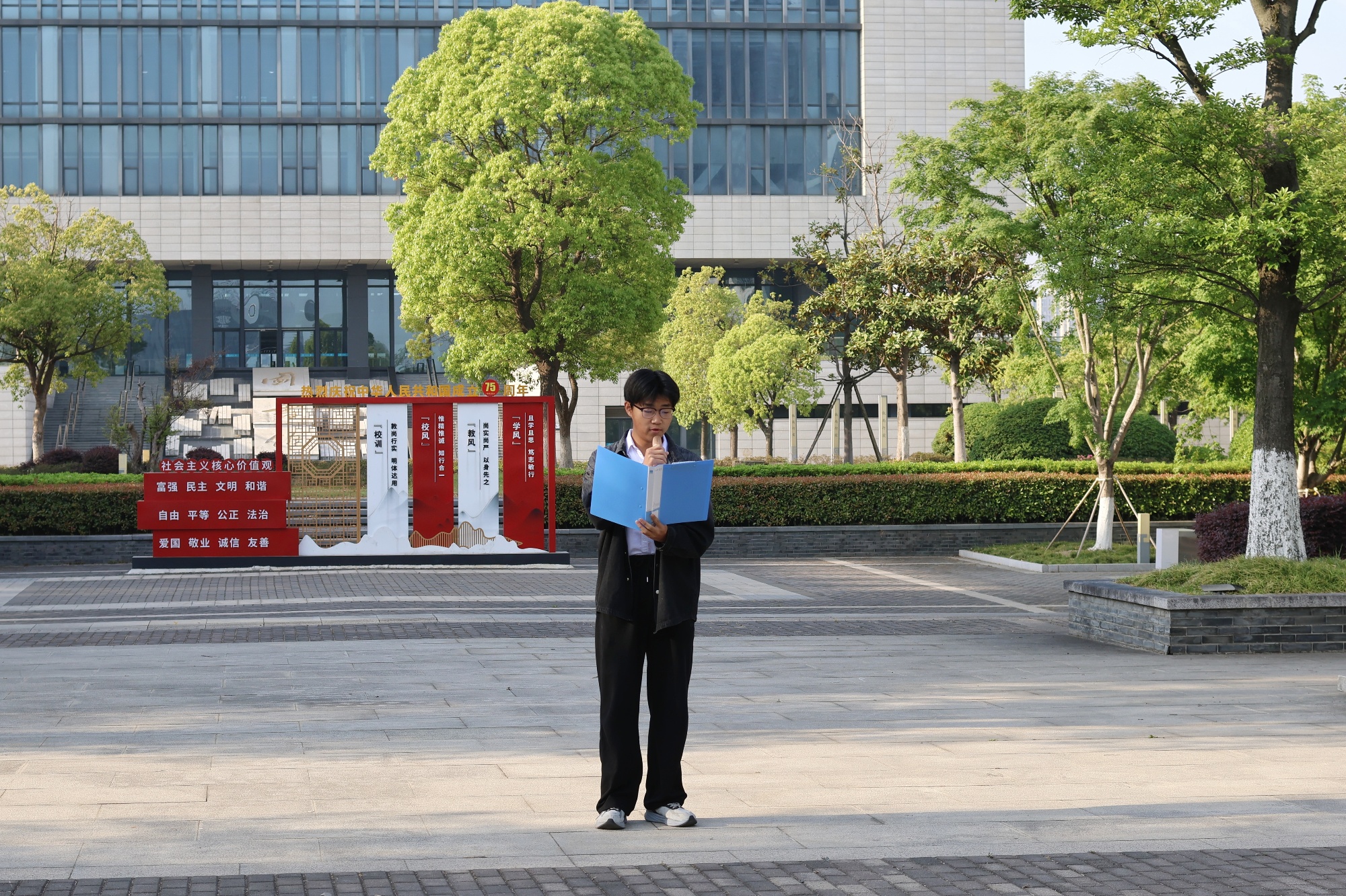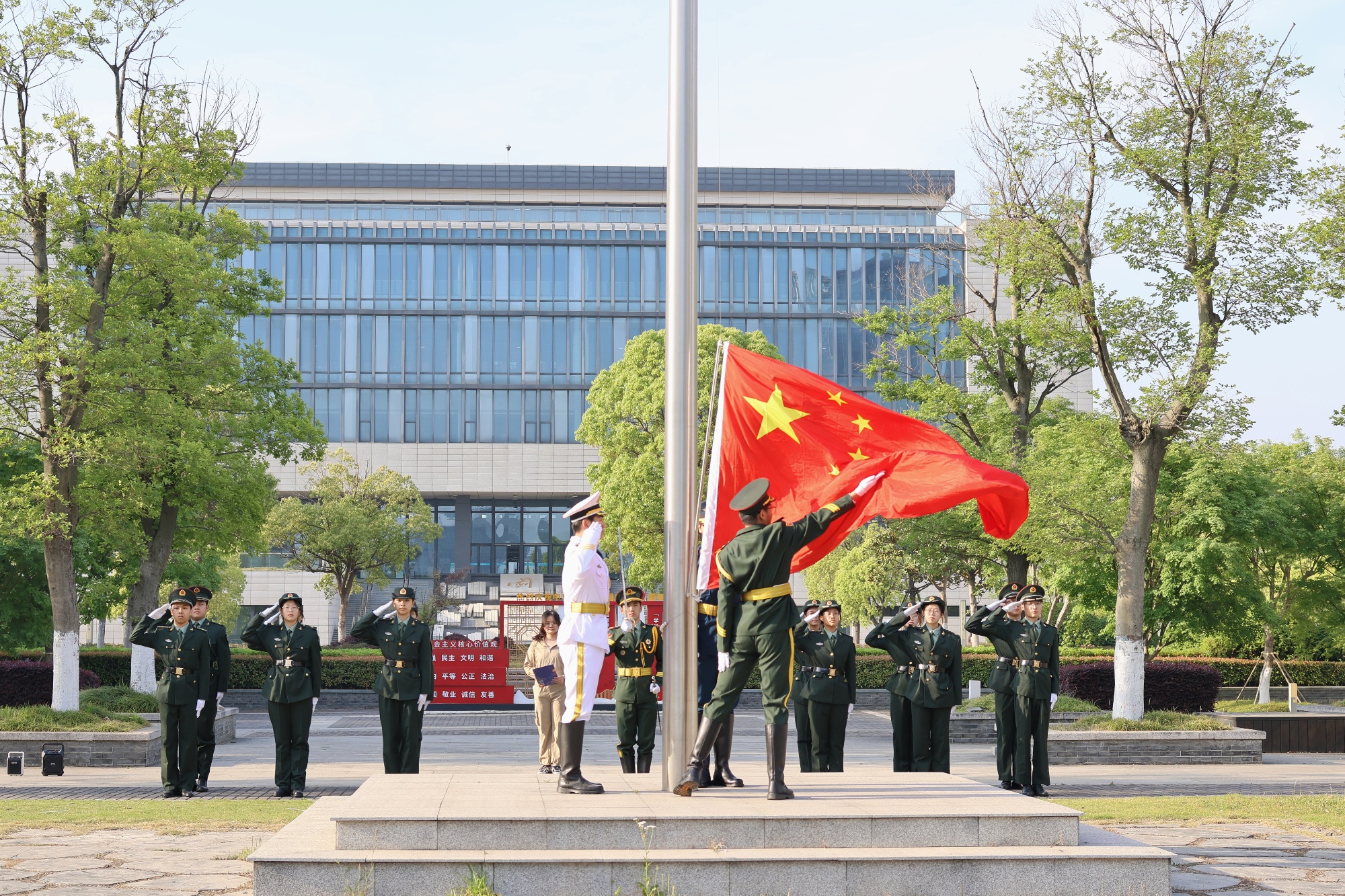 4月30日清晨,思政教师代表、社团骨干和学生代表三百余人齐聚胡瑗广场举行庄严的升旗仪式。2024级小学教育(定向)数学班的吴赞同学在国旗下分享了自己的感悟:活动结合《中国近现代史纲要》课程的学习,回顾了五四运动的光辉历程,很好地激发同学们以五四精神为指引,将个人理想融入国家发展,在青春赛道上奋勇拼搏。