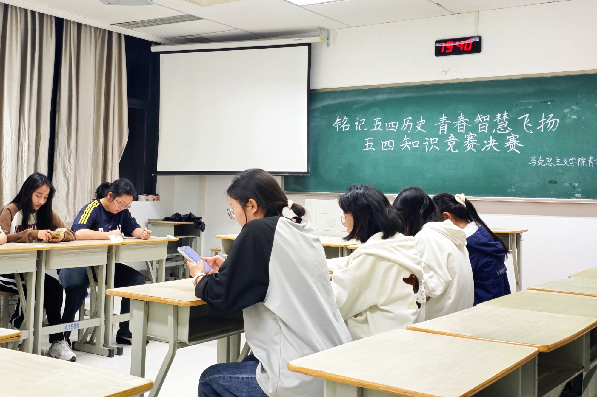 为传承五四精神,强化青年思政教育,马克思主义学院结合《中国近现代史纲要》课程,以五四青年节为契机,开展“赓续五四薪火,激扬青春使命”主题活动。4月23日-30日,在马院党总支的指导下,青年马克思主义研究会精心策划组织,将知识竞赛和仪式教育相结合,引导青年学子深入领会五四精神内涵,强化民族自豪感与责任感,推动思政课程内涵式发展。