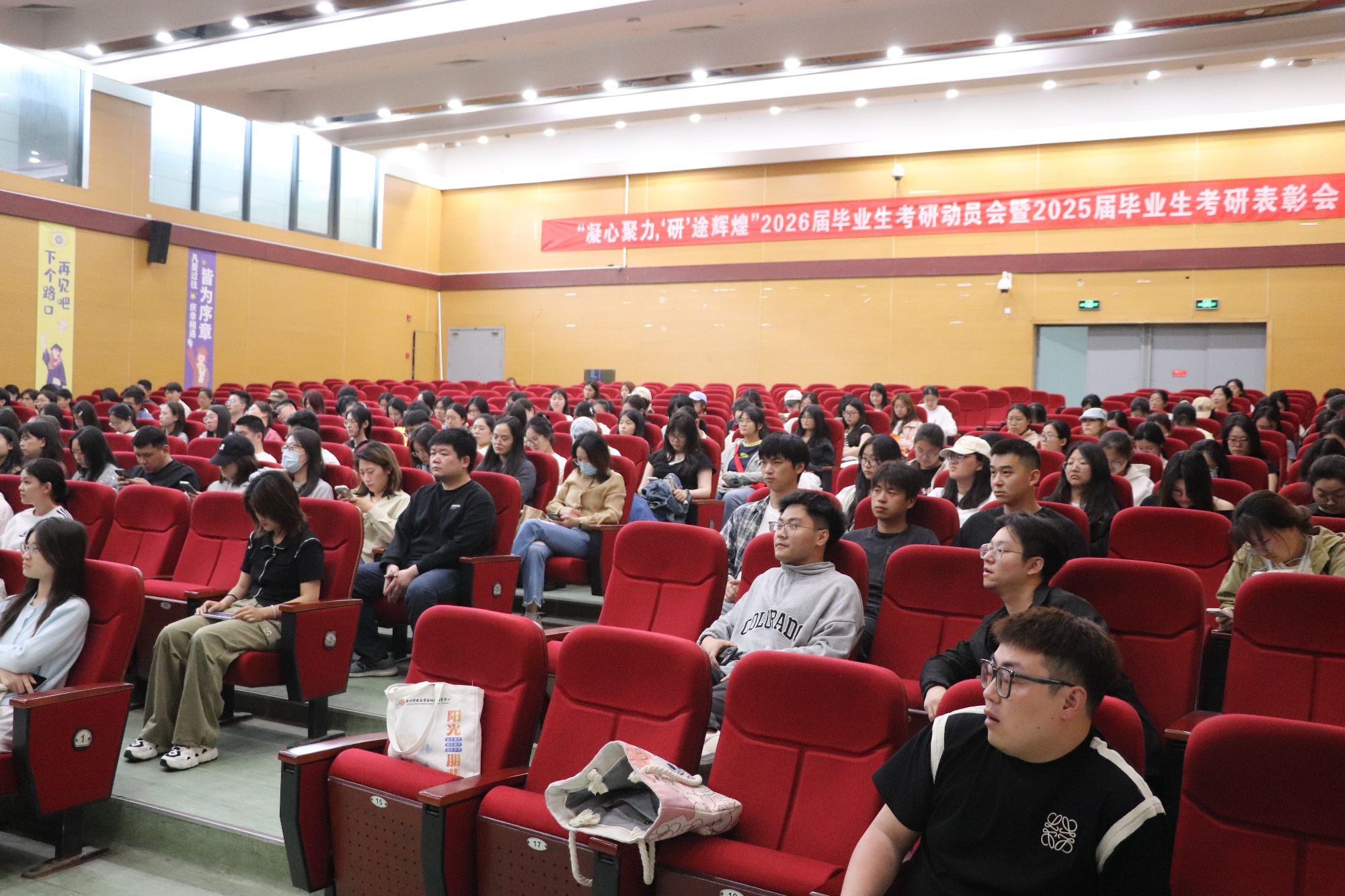 5月7日下午,经济与管理学院“凝心聚力,‘研’途辉煌”2026届毕业生考研动员会暨2025届毕业生考研表彰会在图书馆报告厅举行。全院教职工、2025届考研成功学生代表及2026届备考学生代表参加此次会议,会议由学院党总支副书记、副院长王硕主持。