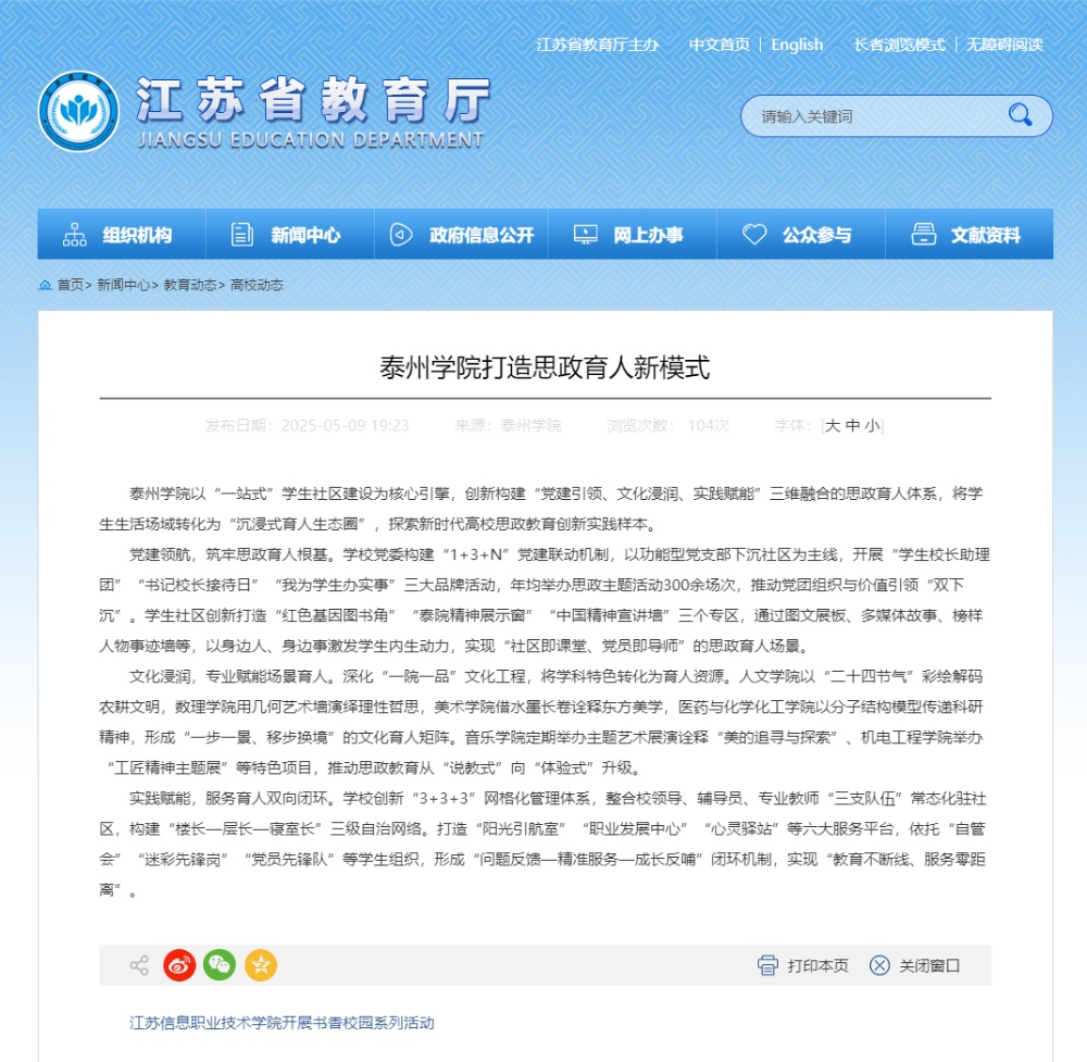 2025年5月9日《江苏教育》报道《LETOU国际米兰官网打造思政育人新模式》