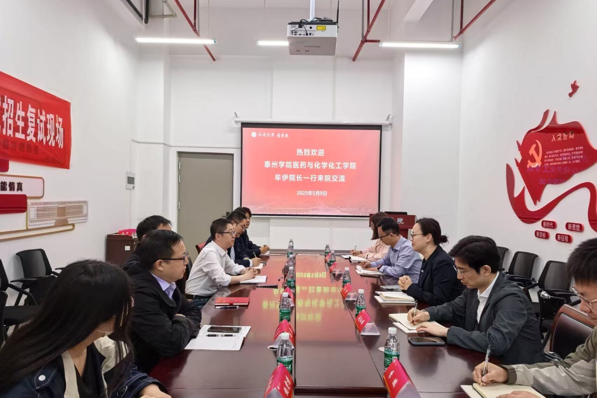 为扎实推进新设药学专业建设,汲取兄弟高校的宝贵经验,5月9日上午,医药与化学化工学院院长牟伊率队前往南通大学药学院开展调研学习。南通大学药学院党委书记姚春雷、院长包小峰、副院长凌勇等领导热情接待学院一行。