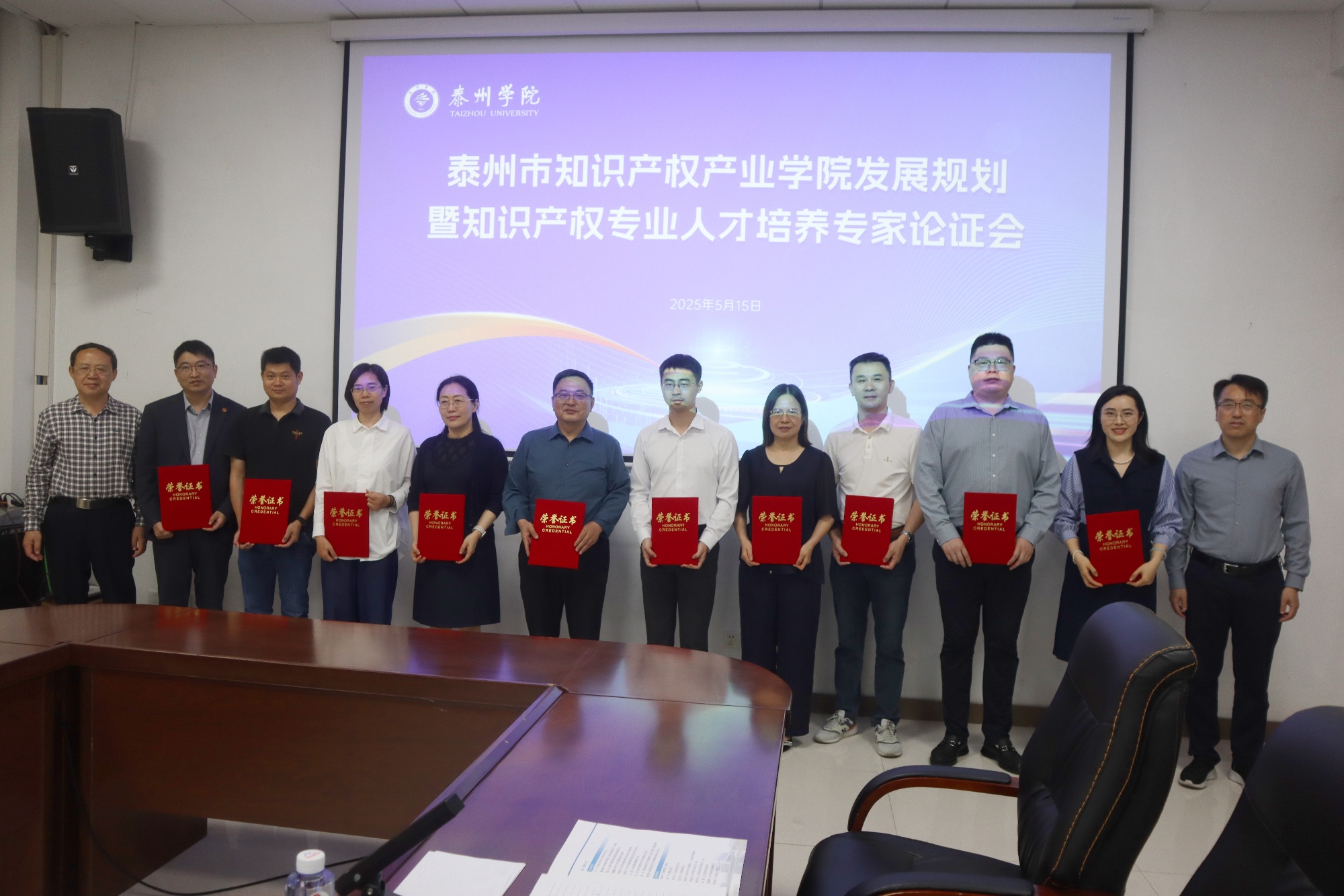 会议设立泰州市知识产权保护中心等十家单位为知识产权产业学院理事单位,并就校企双方共同培育和申报江苏省产业教授进行了磋商。