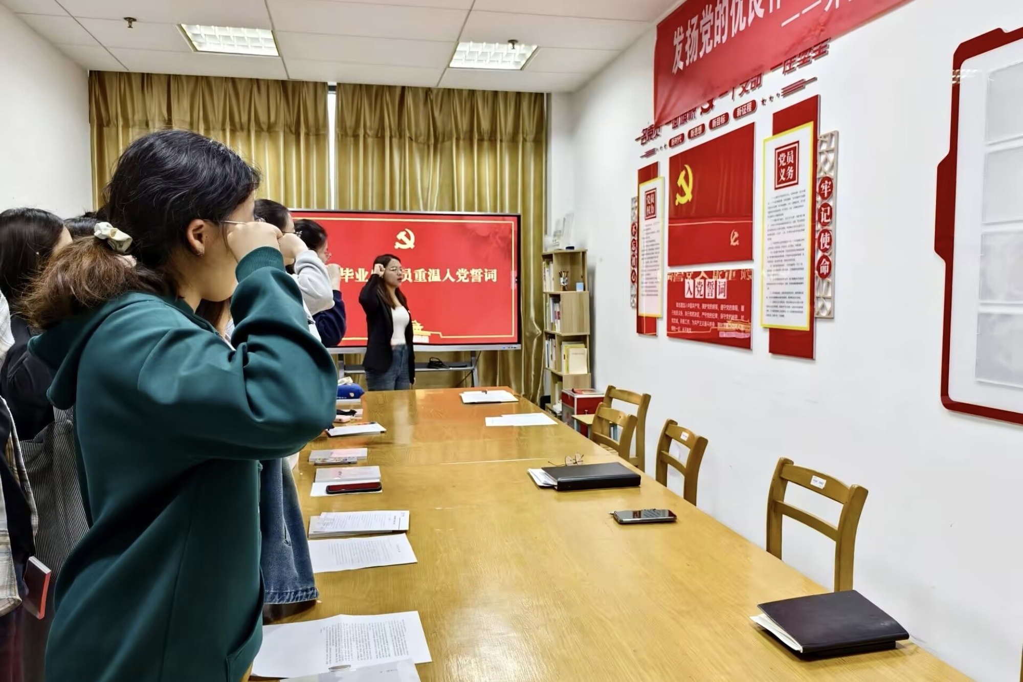 全体毕业生党员共同重温入党誓词,并观看警示教育片《深度调查·年轻有为莫妄为》。