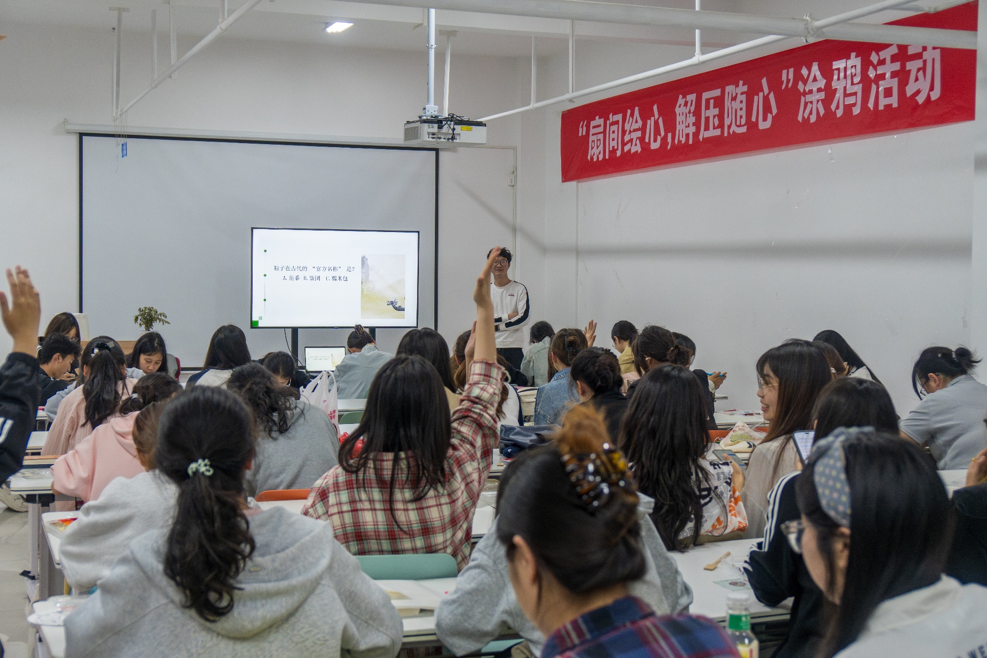 为深入贯彻“五育并举”育人理念,营造积极向上的校园文化氛围,5月23日,信息工程学院以“扇间绘情,解压随心”为主题,在一站式学生社区举办创意涂鸦活动。活动作为学校科技文化艺术节“小泰阳充电站”特色项目之一,吸引70余名学子参与,通过艺术创作与传统文化融合,打造沉浸式体验。