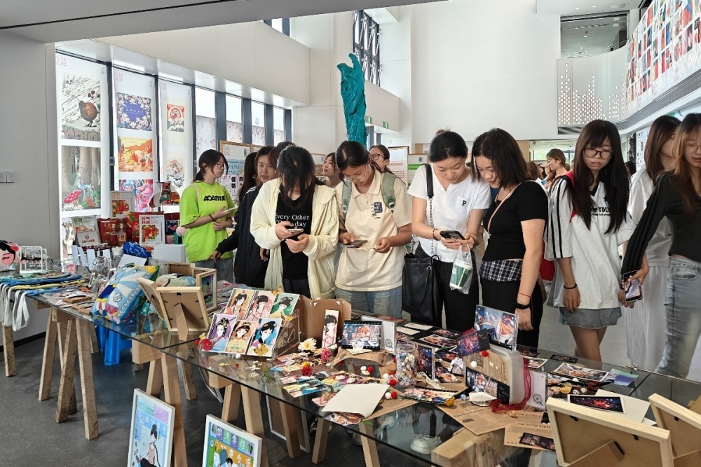 观摩现场,两校师生围绕《虚拟敦煌》数字壁画项目、智能家具交互设计等作品,就创作理念、材料运用及行业趋势展开研讨。2022级视觉传达专业学生窦元表示:“在《AI生成式海报设计》展区,我们直观看到算法与美学的协作逻辑,这种跨学科实践对毕业设计很有启发。”