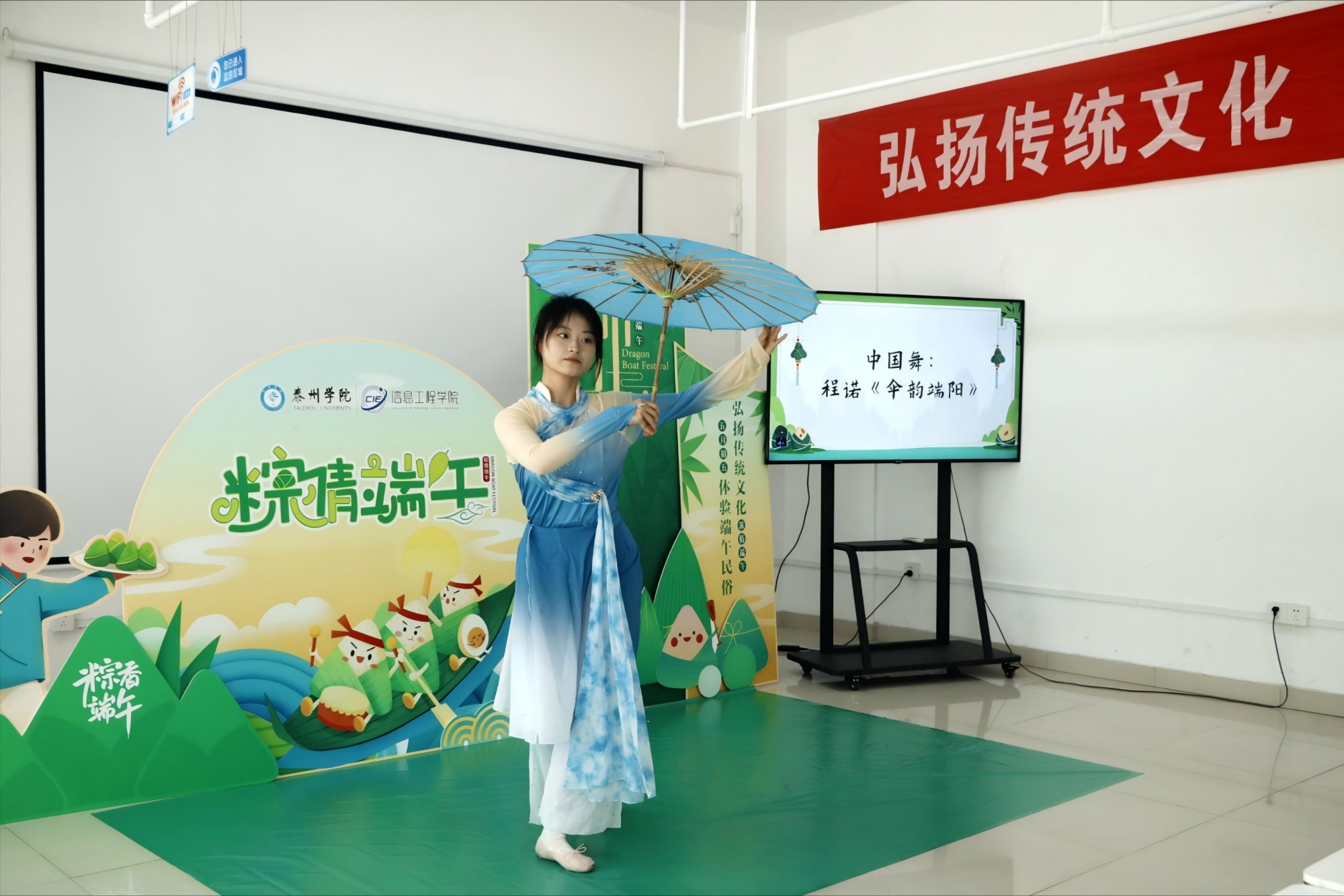 诗歌朗诵《离骚(节选)》、歌曲《离骚》深情演绎、中国舞《伞韵端阳》乐舞翩翩,学生们的才艺表演将活动氛围烘托至高潮。现场师生在悠悠古韵中追溯千年文脉,感悟家国情怀的深厚积淀。