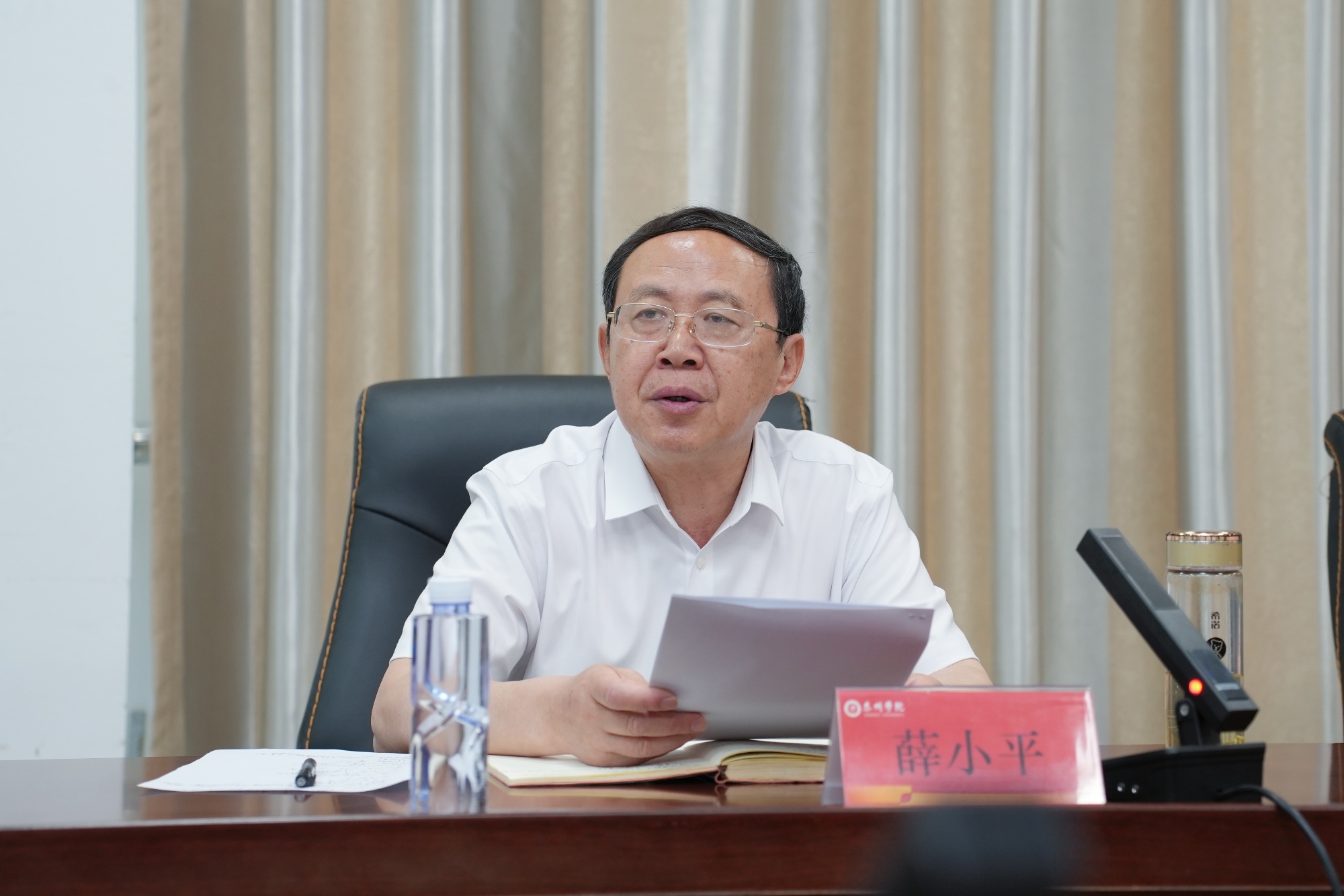 薛小平就贯彻落实会议精神提出了“四个一”的工作要求:守住一根不可逾越的红线,严格落实师德师风第一标准、对师德失范行为“零容忍”;培育一批叫得响的典型,争取让更多老师获得更高层次的师德模范称号;开展一系列有温度的活动,在全校营造尊师重教的良好氛围;探索一些行之有效的方法,建立师德师风建设长效机制。