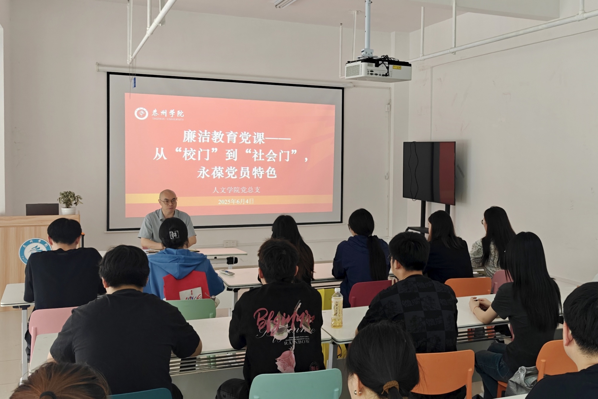 为切实做好2025届毕业生党员离校教育,增强党员身份意识,增强组织观念和纪律观念,6月4日,人文学院党总支组织开展毕业生党员离校前主题党日活动。活动由“履岗能力再提升”“成长分享再追忆”“思想交流再碰撞”和“廉洁从业再警示”四个环节组成。党总支书记吴小荣、副书记侯维娜、党支部书记和2025届毕业生党员参加活动。