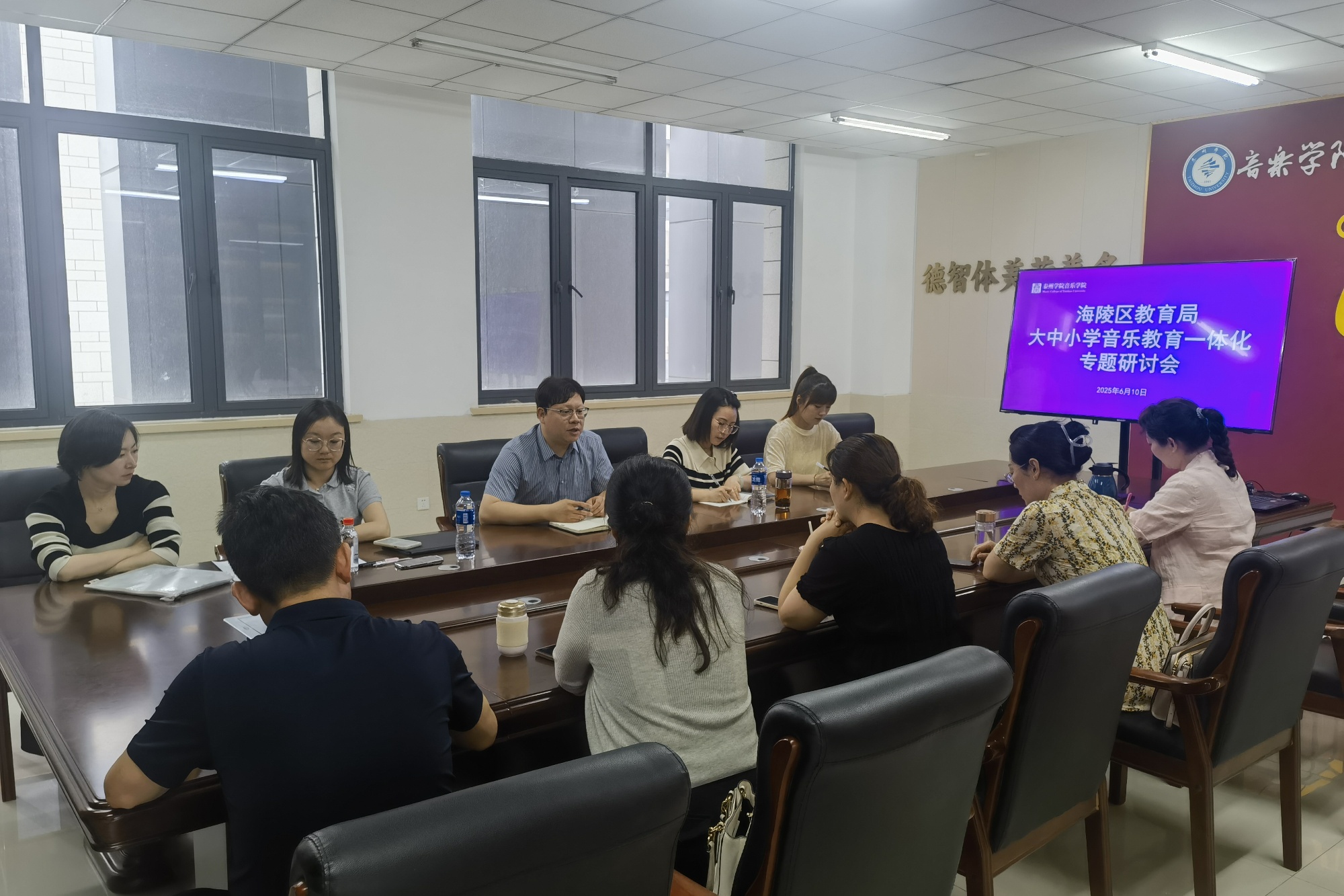 6月10日下午,海陵区教育局音乐教研室主任陈亚彬带领海陵区部分音乐骨干教师来米兰官网音乐学院开展大、中、小学音乐教育一体化专题研讨会。音乐学院院长孙菡、副院长蒋进、音乐学专业负责人闫昱及相关教研室主任参加研讨。
