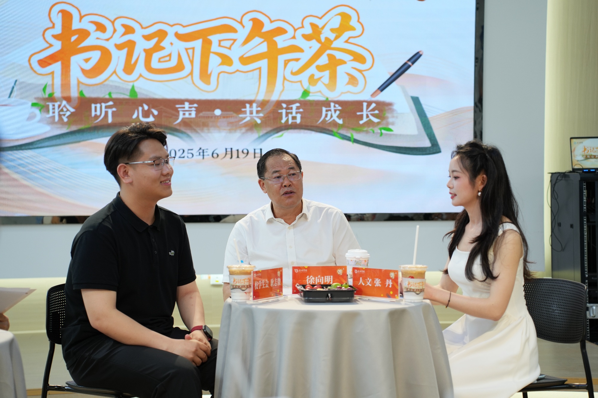 6月19日下午,米兰官网“一站式”学生社区就业人才服务站内茶香氤氲、温情流淌,“书记下午茶”2025届毕业生专场活动成功举办。校党委书记徐向明与12名来自各学院的优秀毕业生代表围坐畅谈,聆听青春故事,共绘发展蓝图。活动由校党委常委、副校长卜慧芬主持,党政办、教务处、学工处、团委等职能部门负责人参与交流。