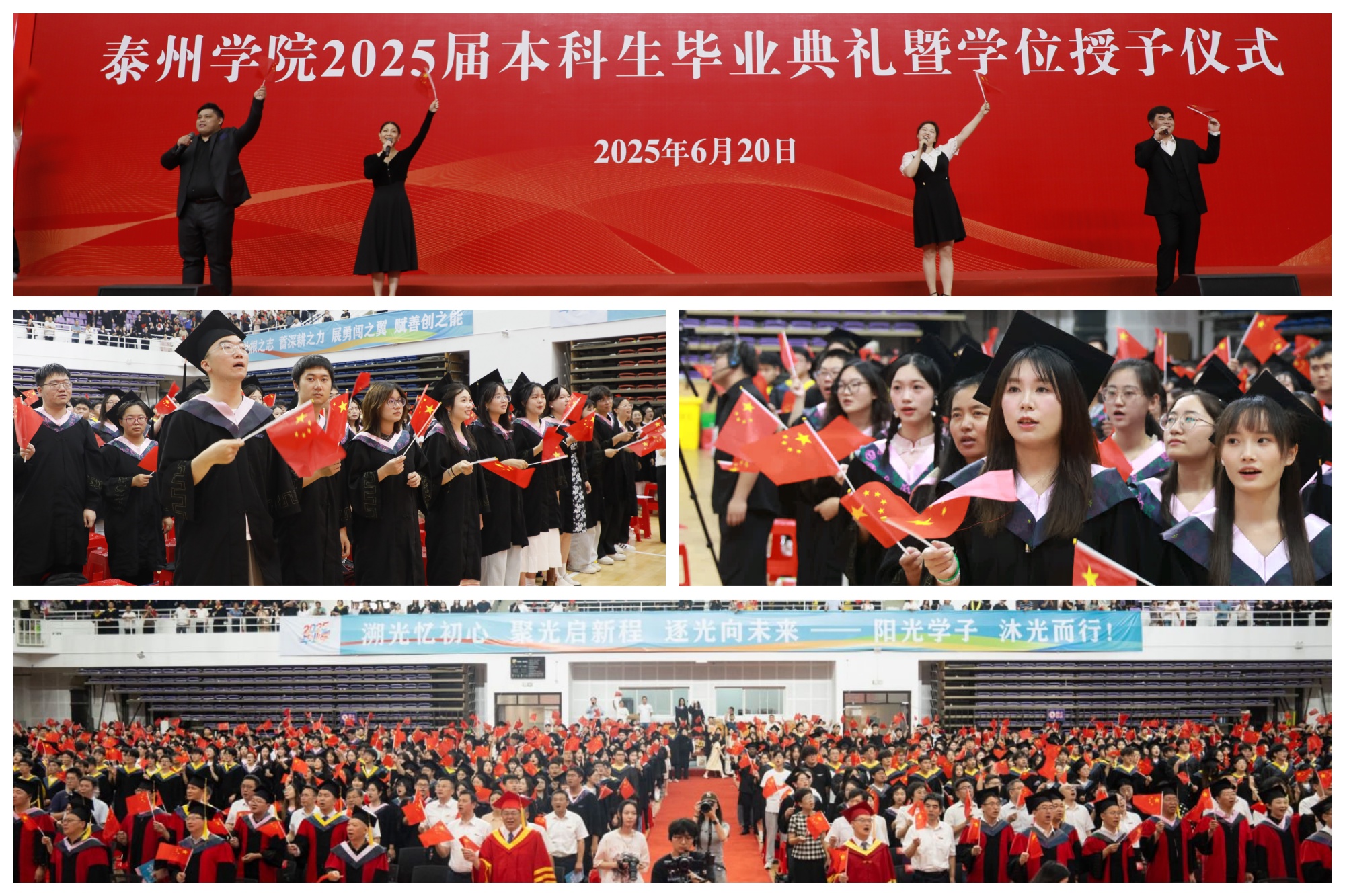 在全场师生齐声高唱《歌唱祖国》的激昂歌声中,2025届本科生毕业典礼暨学位授予仪式圆满落幕,又一批泰院阳光学子将传承泰院精神,沐光而行,书写泰院人新的光阴故事和奋进篇章。