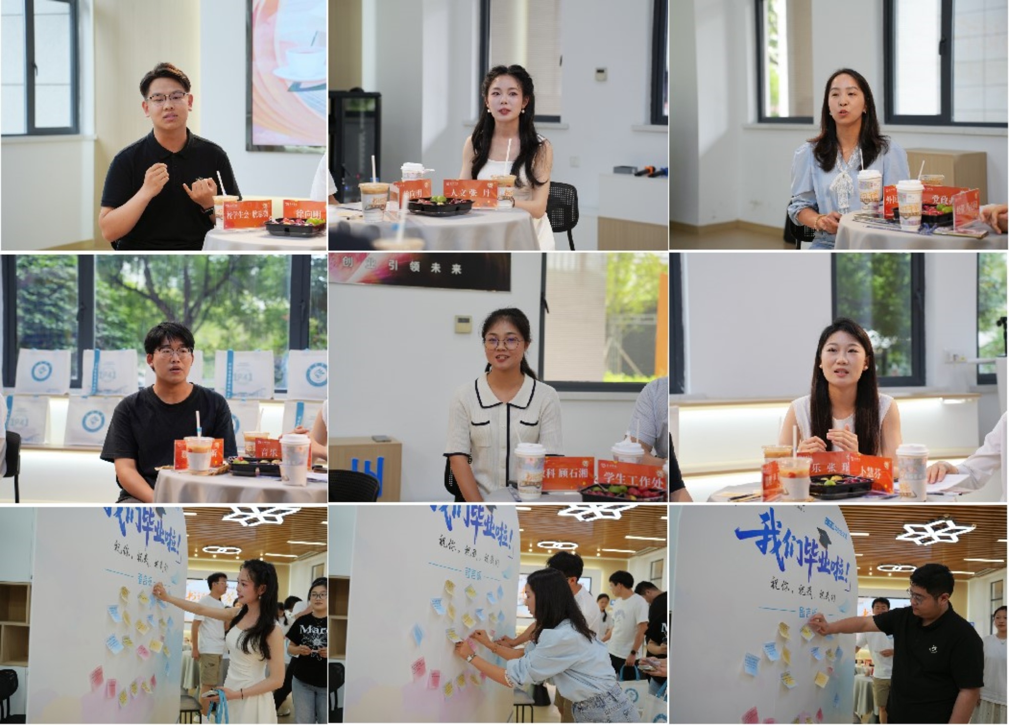 活动尾声,毕业生们将“给一年后自己的话”和“对母校的小期待”书写成笺,贴于寄语展板,字里行间饱含对未来的憧憬和对母校的深情。在温馨的赠礼与合影留念后,这场特别的“下午茶”圆满落幕。这不仅是一次深情的告别,更是一次精神的传递与未来的约定。
